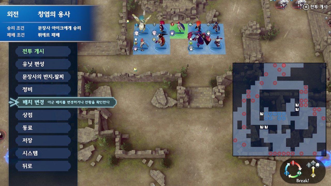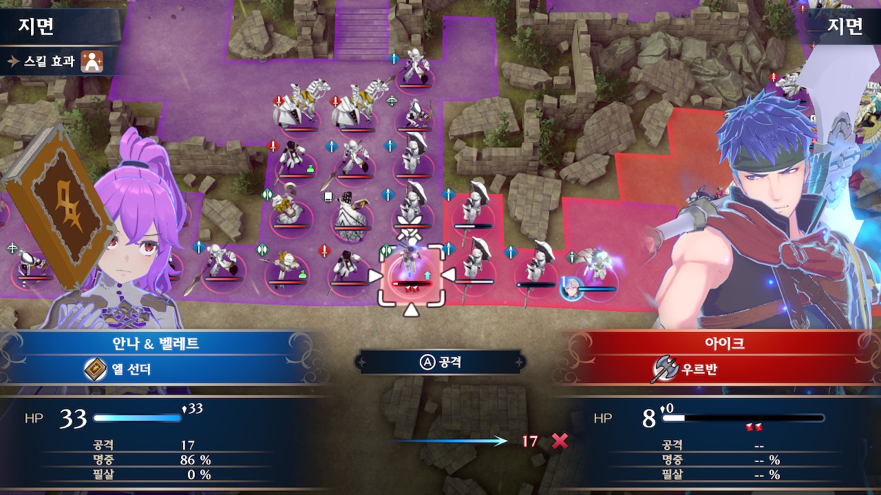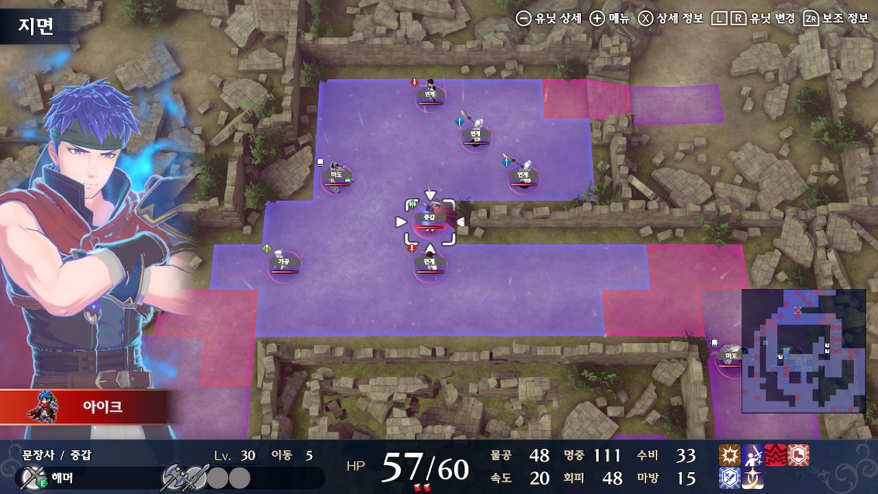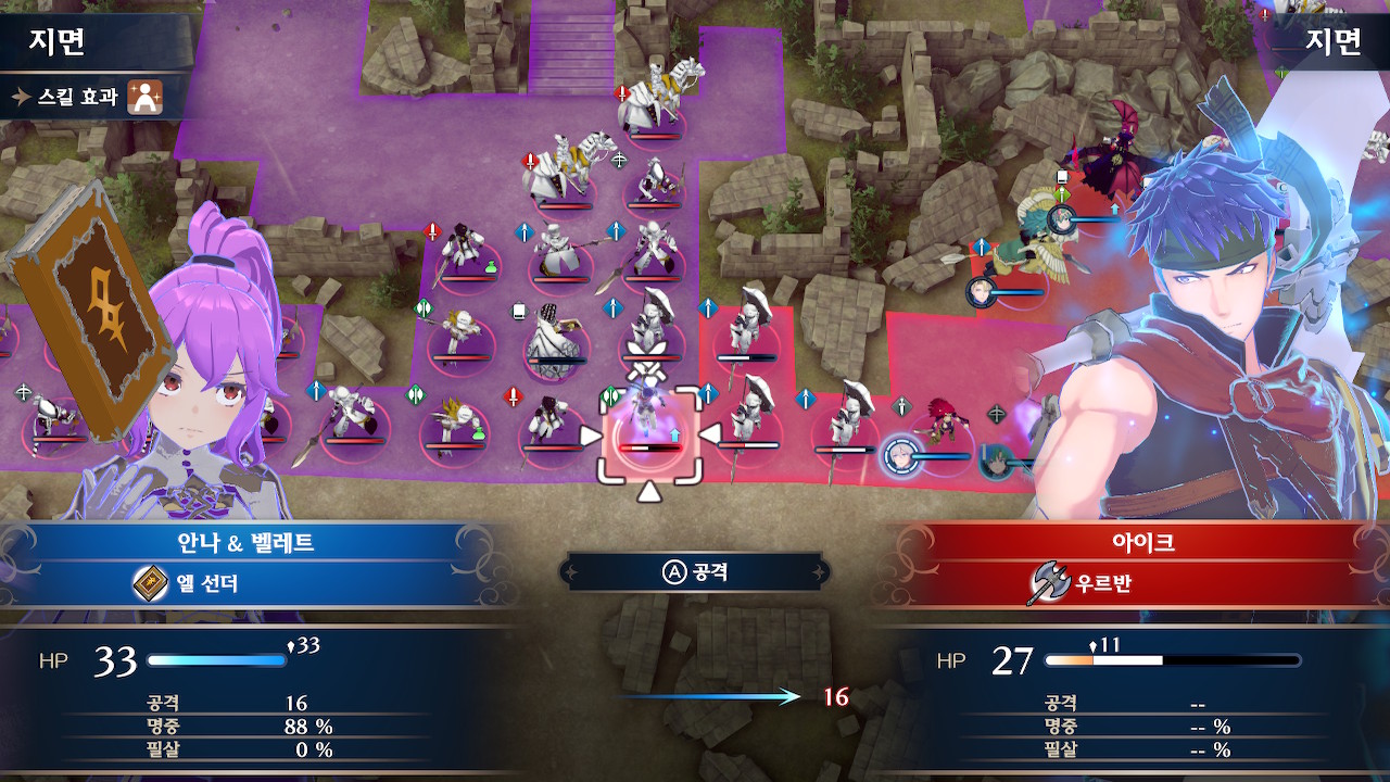중갑병을 차례차례 죽인 후 면상에 들이닥친 아이크를 공격하셔도 되고, 사정거리 3칸 이상의 공격수단이 있다면 중갑병을 일부러 남겨놓고 천천히 아이크를 공격해서 클리어해도 됩니다.