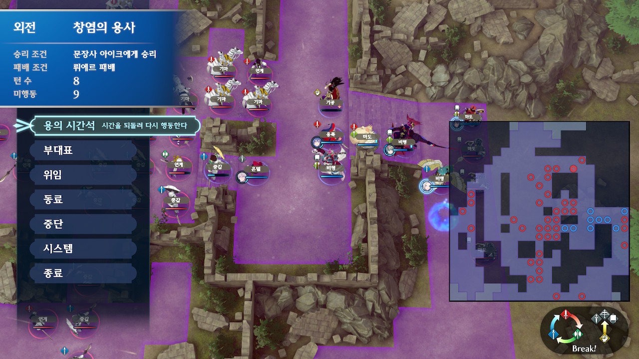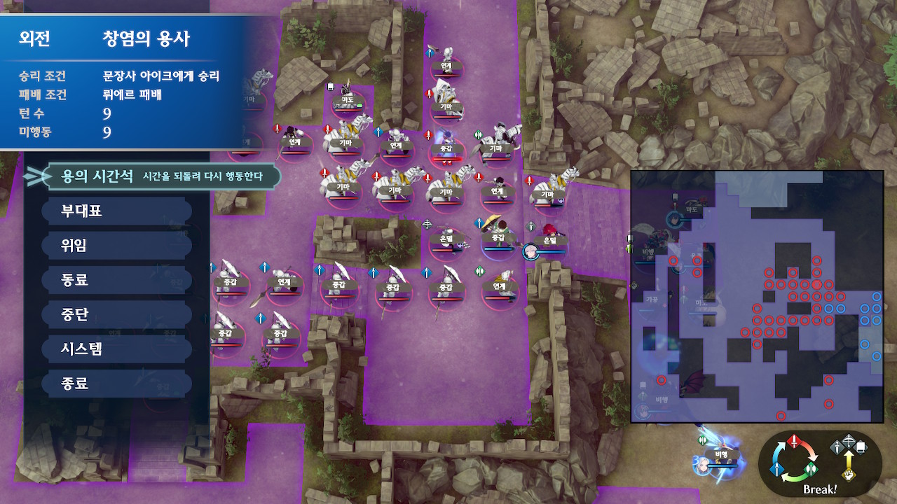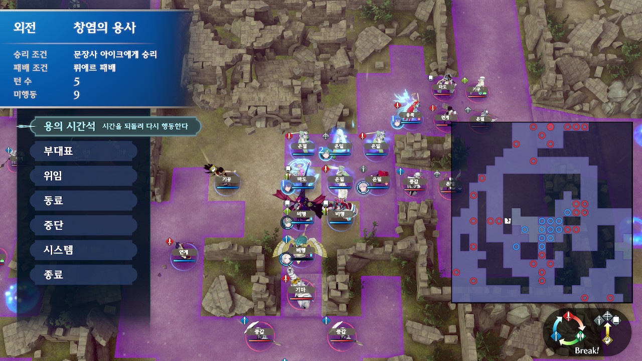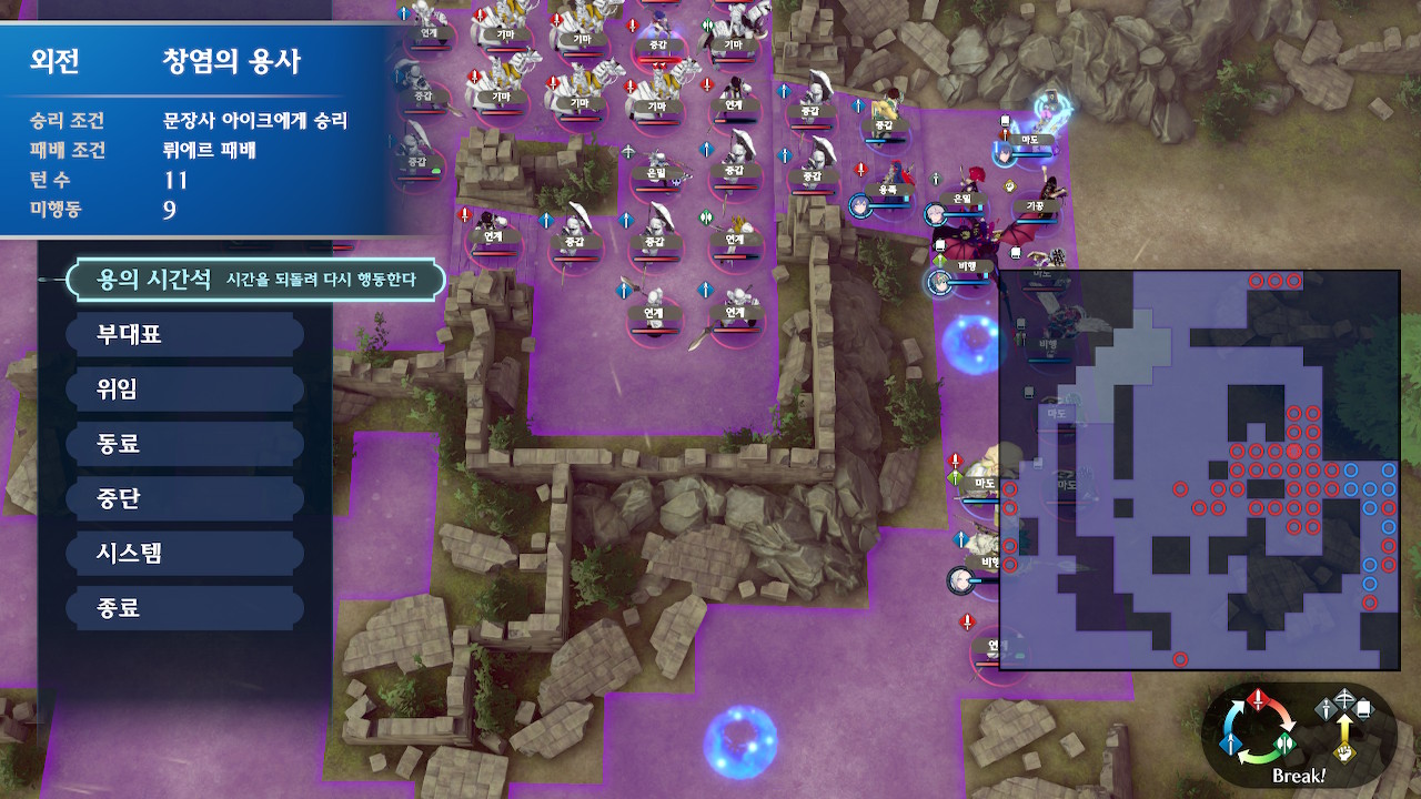 동쪽으로 꾸역꾸역 돌파를 했다고 하더라도, 11턴쯤 되면 아군 바로 옆에 적증원이 튀어나오기 때문입니다. 대미지와 탱킹이 받쳐주지 않으면 해당 위치에서 나오는 증원군에 대처할 수 없습니다.