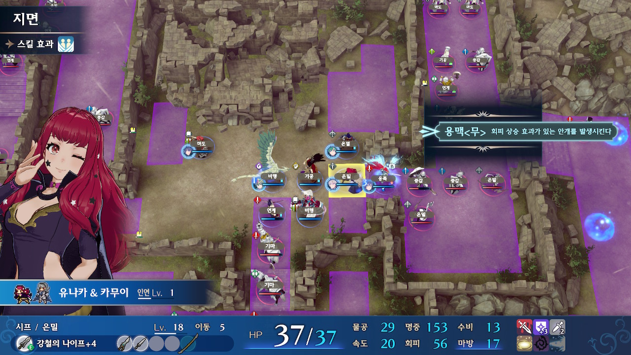 여담이지만, 메인 시나이오 기준으로 대략 10장~11장? 그쯤만 되도 적군이 사거리 1~2의 무기를 들고 오기 때문에, 물리탱은 적군의 체인어택에 피가 슬슬 빠지게 됩니다.