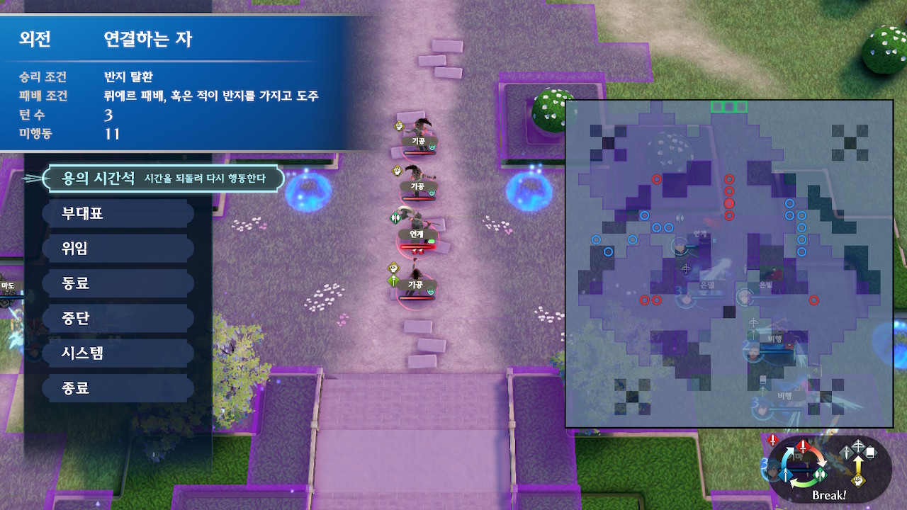 반지 이형병을 죽이게 되면, 앞서 말했듯이 증원군이 쏟아지게 되고 다음턴으로 넘어가게 됩니다. 이때 턴을 이미 소모한 아군도 새로 행동을 할 수 있기 때문에 미리 진형을 갖춘 후에 막타를 치는 것을 추천드립니다.