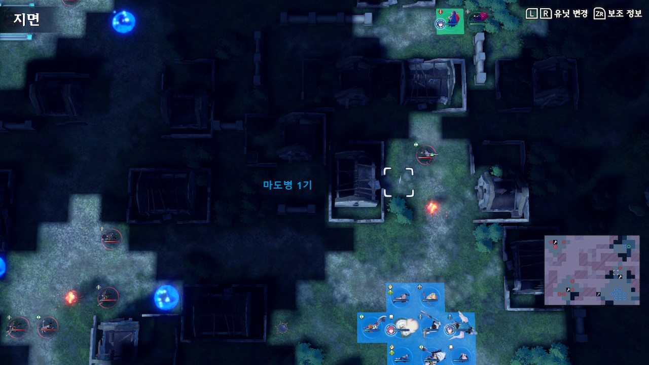 보다시피 적 유닛 중에 연계병들이 많이 있습니다. 따라서 쉽게 점사당하는 위치에 아군 유닛을 던지면 체인 어택에 희생자가 생기게 됩니다. 초반에는 적들의 사선에 유의하면서 전진합시다.