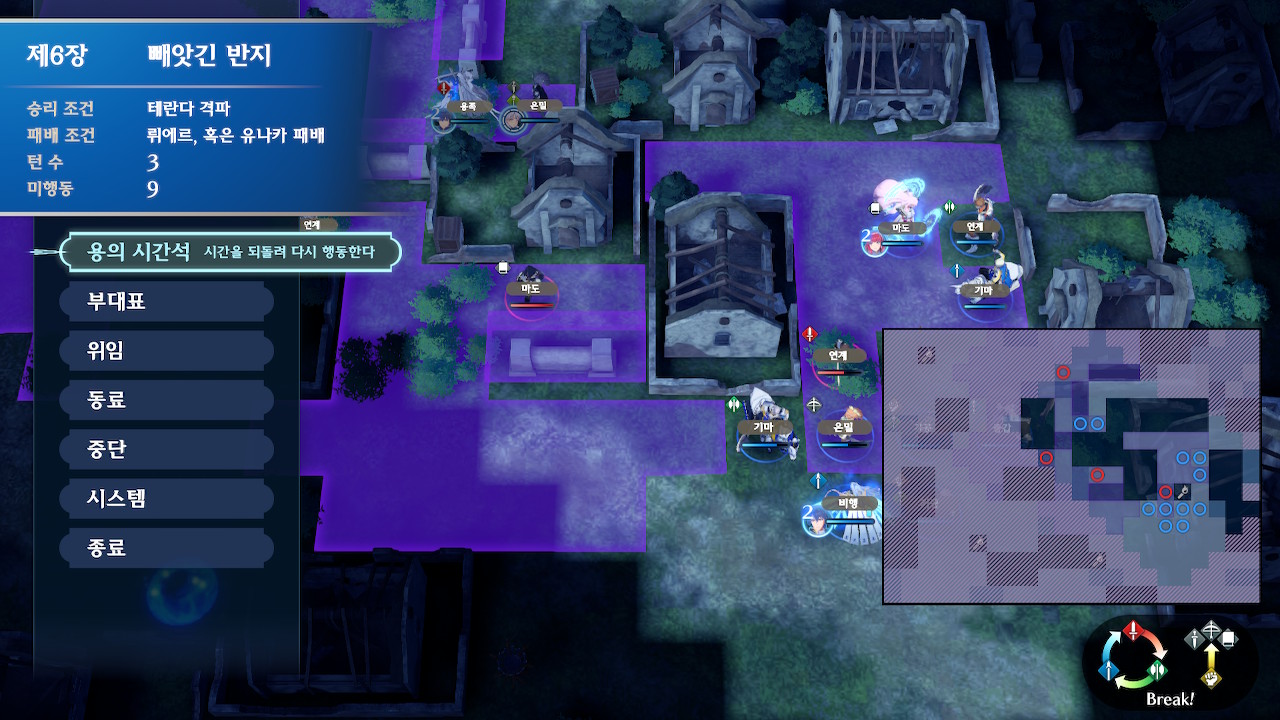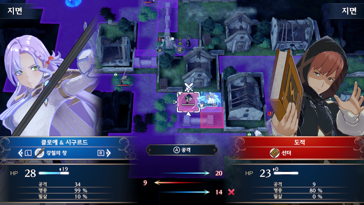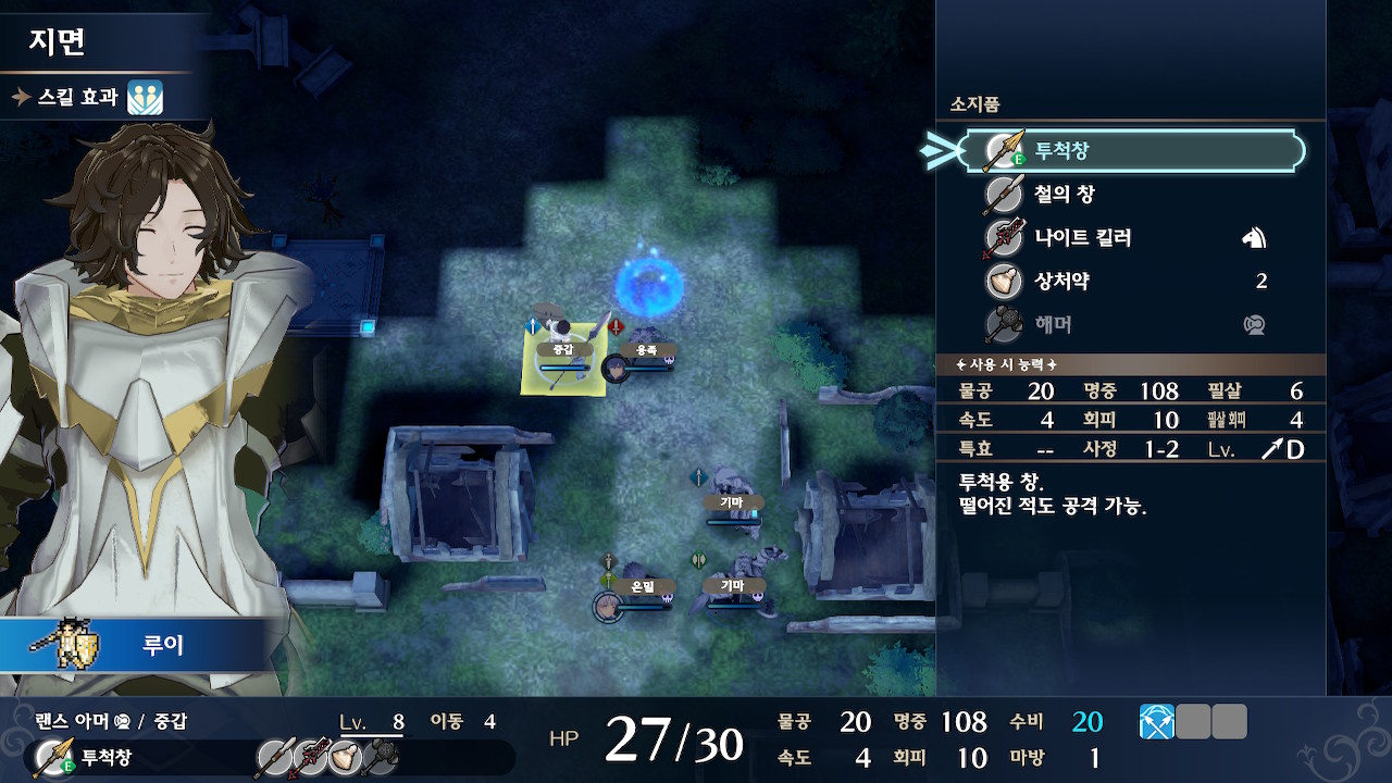 3턴째 상황 수풀 속에 들어간 적군은 회피율이 높아지니까 마도병(여기서는 셀린)이나, 인게이지 필살기로 잡아줍시다.