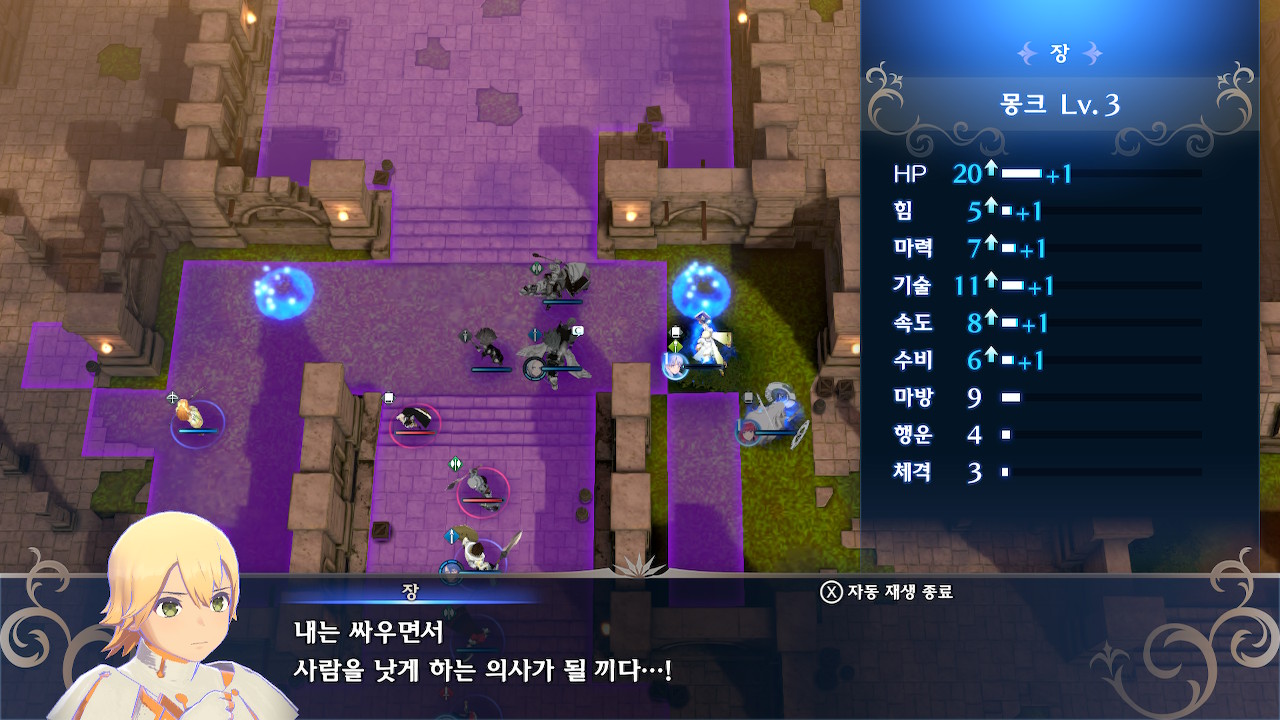 적군 세명의 사선을 루이로 땡겨오는게 중요하지만, 그렇다고 너무 앞으로 보내면 아군 후위(여기서는 유나카와 에티에)가 적군을 공격할 수 없어서 다음 턴에 적군을 다 잡을 수가 없습니다.