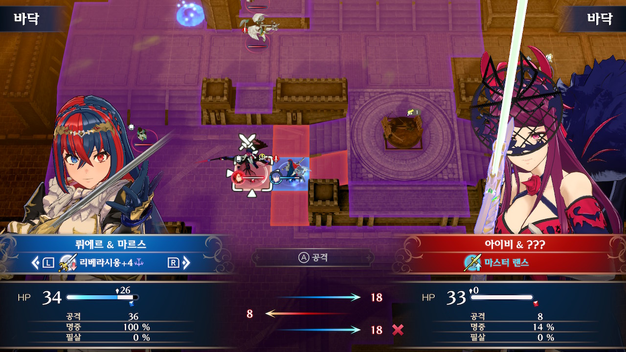 이번 전투는 이르시온의 왕녀 아이비와 싸우게 되는데, 이동거리와 공격범위가 상당한 압박으로 다가올 수 있습니다.
