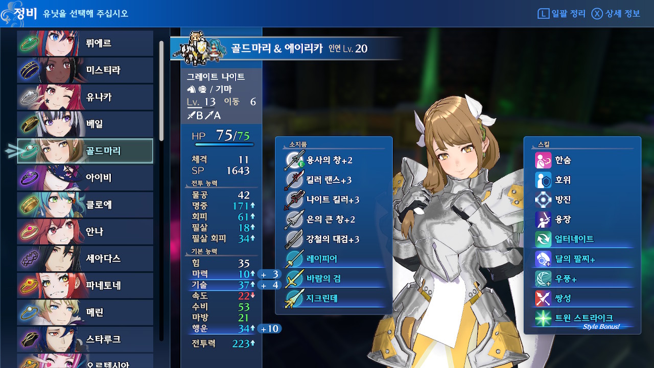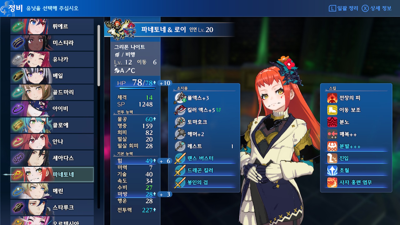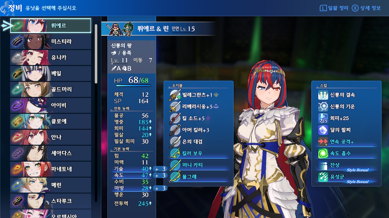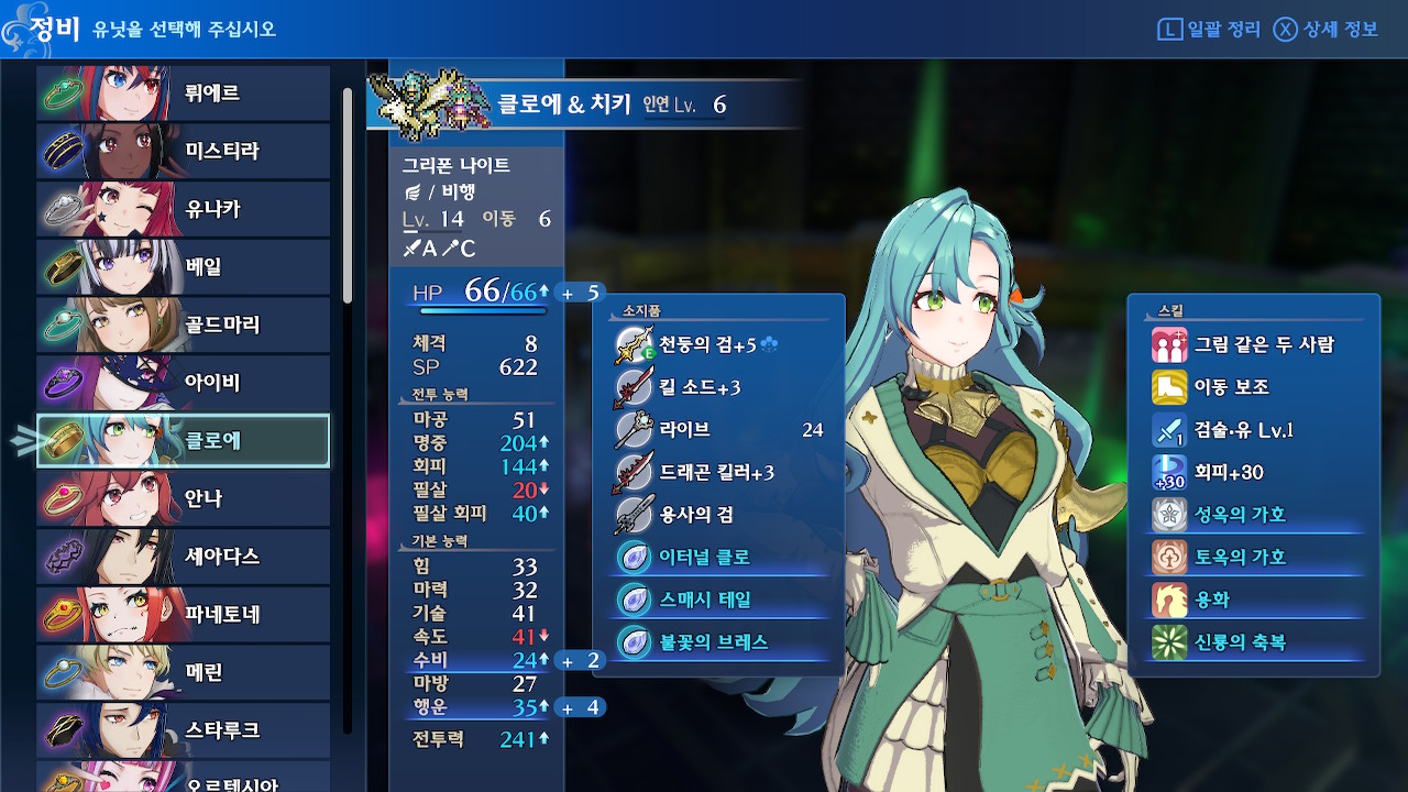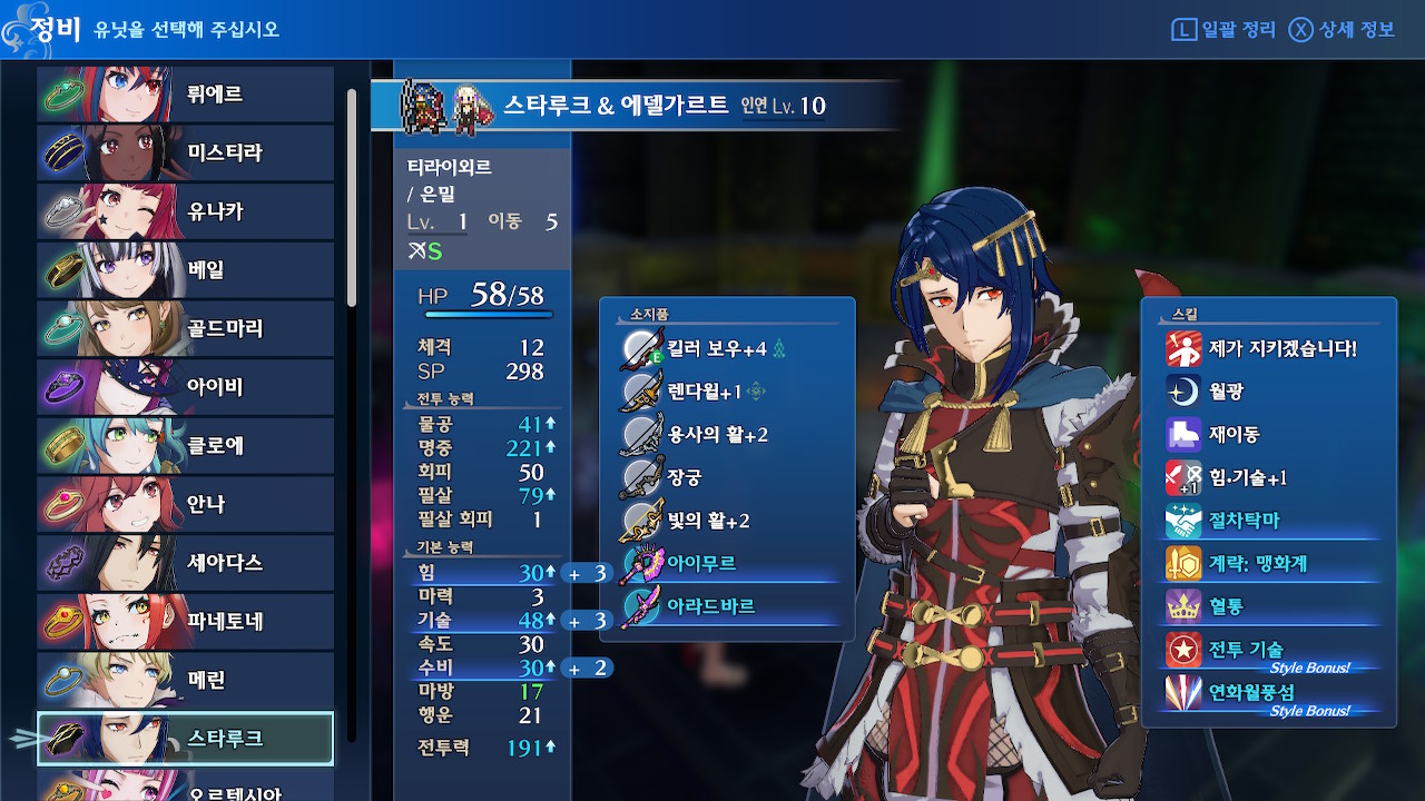 여담이지만 루나틱 메인 캠페인 후반부(대략 19장 이후)에 구린 물리 딜러들은 특별한 이유가 있는게 아니라, 힘 성장이 받쳐주지 않아서 구린 경우가 대부분입니다(힘이나 마력 상한이 30미만이라면 진짜 구제불능일 것 같지만, 그 정도 캐릭은 없...을 겁니다?).