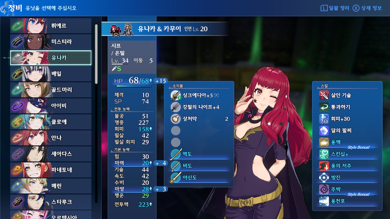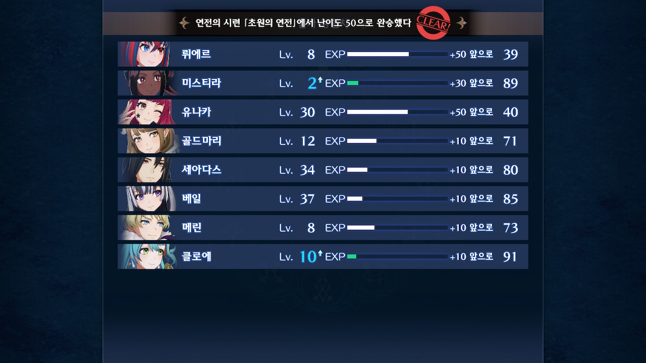 어차피 경험치랑 sp도 안주길래(알고보니 줌) 유나카-뤼에르 부부사기단만 출격시켰는데, 의외로 수월하게 깰 수 있었습니다.