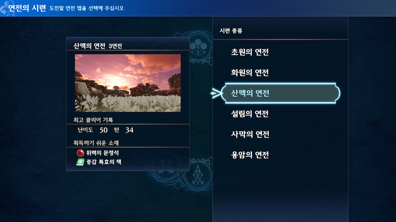초원의 연전을 깨고 난 후에는 산맥도 깨봤는데(화원은 초원을 깨기 전에 48단계를 클리어 해서 일단 패스), 맵이나 몬스터의 구성만 약간씩 다르고 등장하는 몬스터들의 능력치는 동일했습니다.
