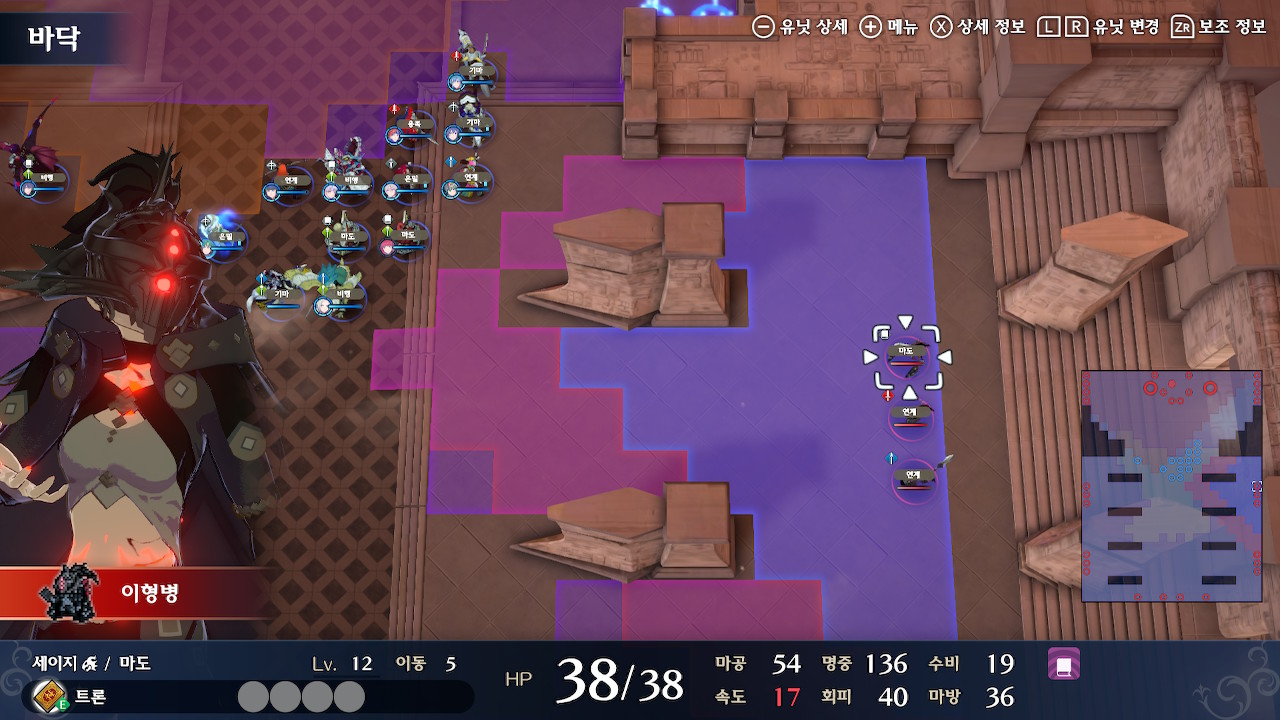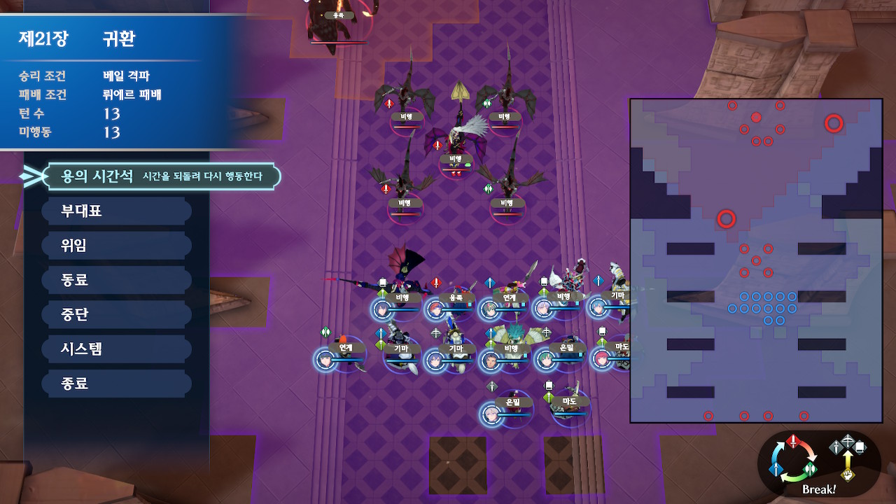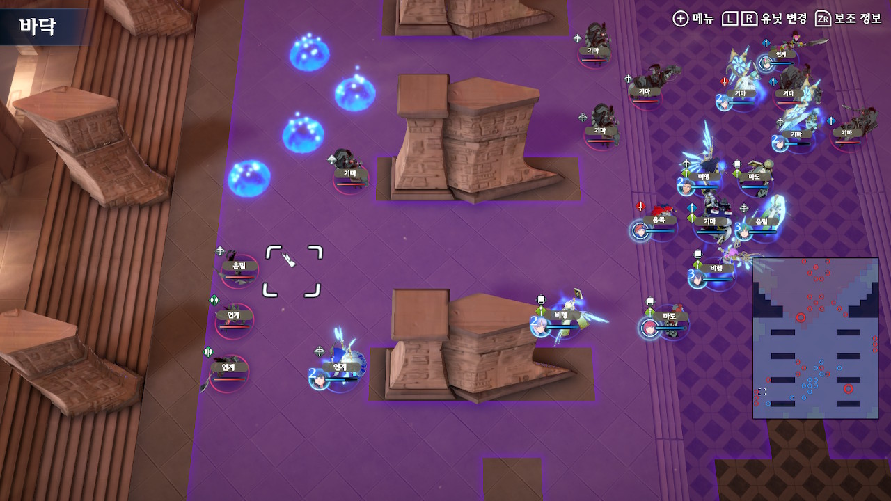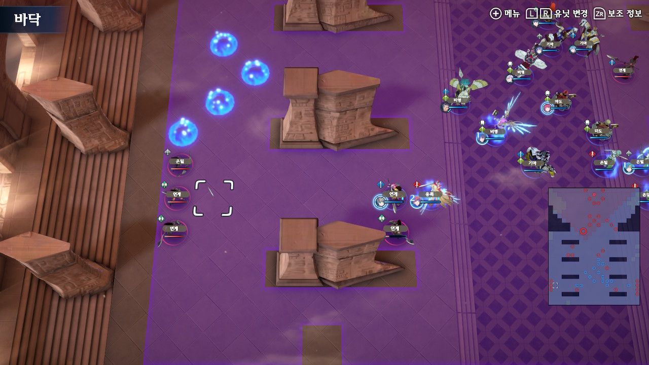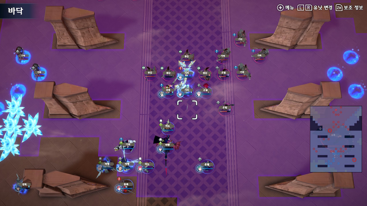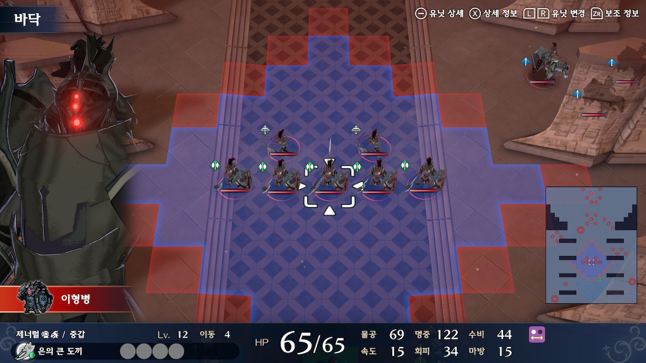 탱킹 라인에 선 유닛들을 제외하고 에이스 1,2기를 따로 빼서, 좌하단의 잡몹을 잡고, 다음턴에 이형룡을 잡는 것까지가 초반 설계입니다.