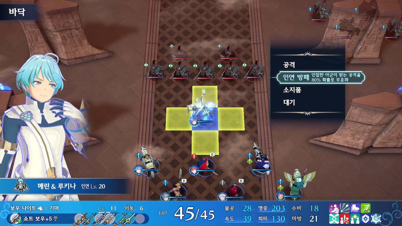 거리가 애매해서 아군 진형이 붕괴될 것 같으면 역으로 거리를 한두칸 벌리거나, 루키나의 인연방패를 인게이지 끝까지 써먹어야 합니다.