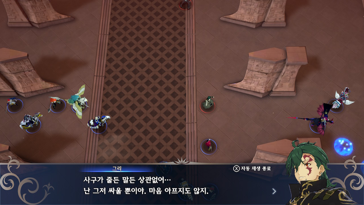 이런식으로 증원을 계속 정리하다보면 그리가 대사를 친 후, 아군에게 달려옵니다.