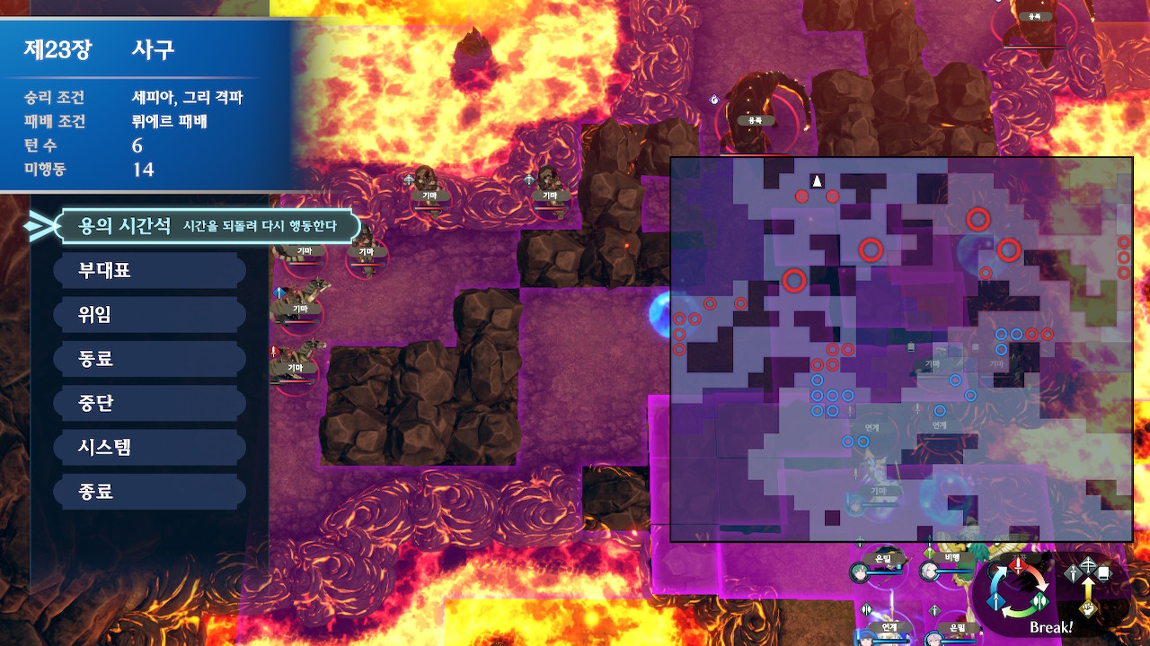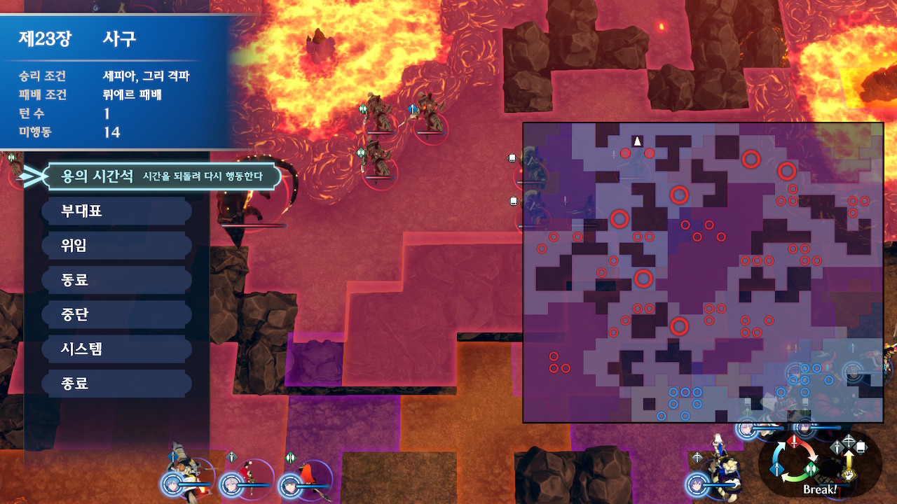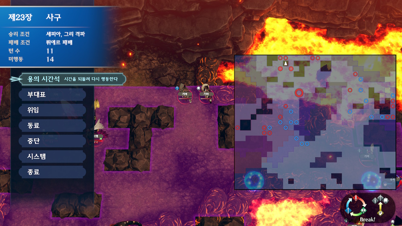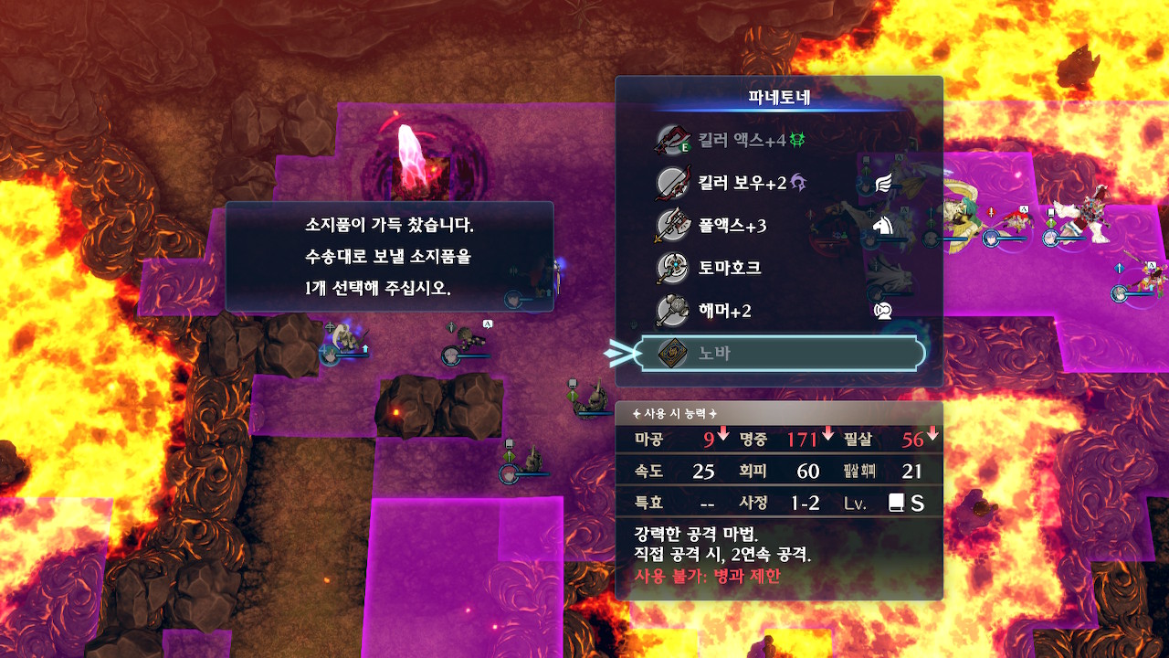 게임을 진행하다보면 카밀라가 일정턴마다 임의의 구역에 화산석을 떨어트립니다. 체감상 아군 유닛이 많이 뭉쳐있는 곳이나 보행불가 지역에 자주 떨어집니다.