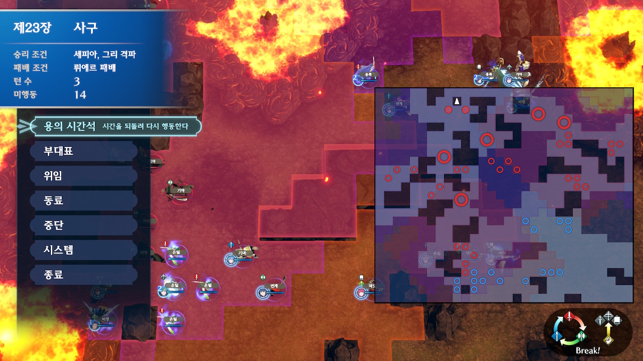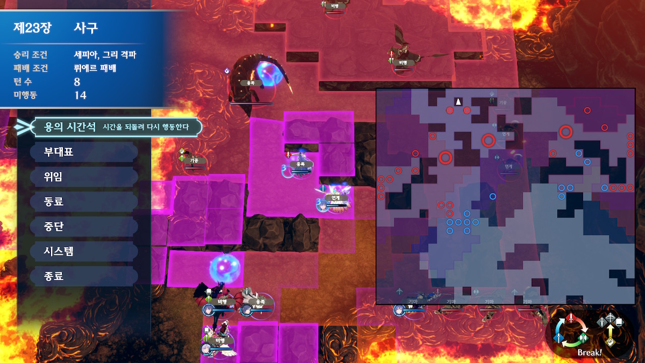 고립된 아군이 근처에 있다면 다음턴에 비명횡사 할 수 있으니, 저 부근에서는 진형을 갖추고 전진해야 합니다.