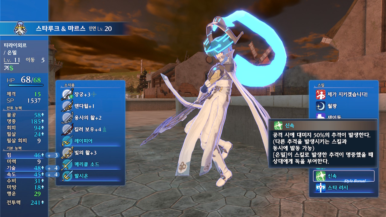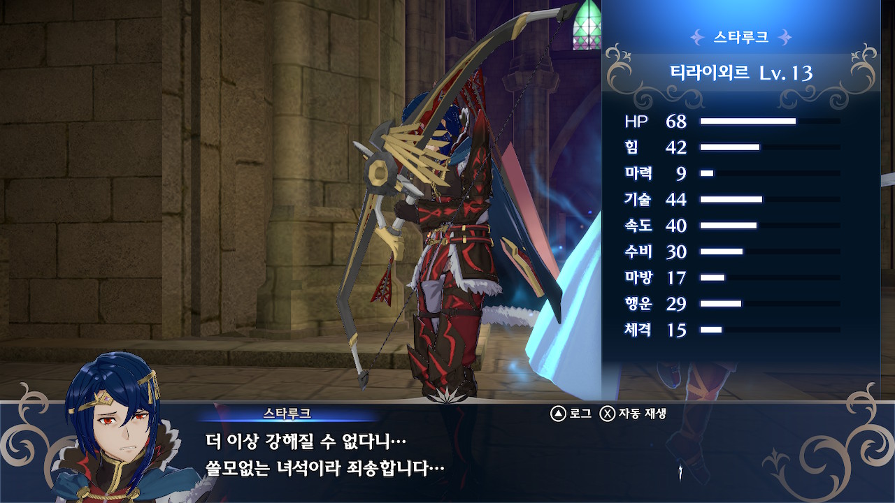 스타루크의 경우, 달의 팔찌라도 달아주지 않는 이상 본편 후반부에서는 딜부족에 시달릴 겁니다. 높은 기술 수치를 바탕으로 월광을 터트린다고 하더라도, 기본 힘이 워낙 낮아서 기스도 못낸다거나(...).