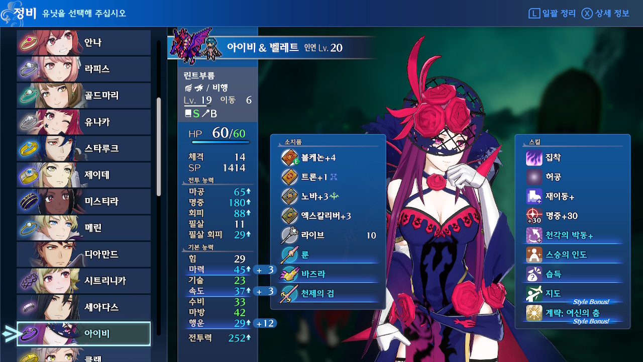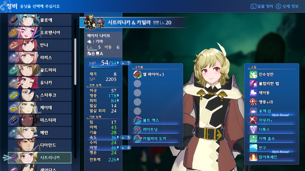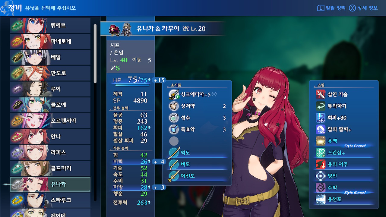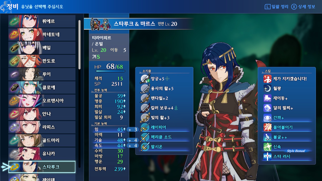 사실 엔딩 이후 연전용 그리폰 나이트는 어쩔 수 없이 검술 유 회피 30을 달아야 하고, 인게이지도 큰 의미가 없습니다. 그나마 삼반장은 페일노트, 필살기가 좋아서 차별화가 되지만..