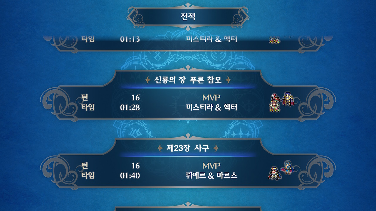 2회차 본편 진행도중에 했을 때는 16턴이 걸렸고, 다시 했을 때는 아이크도 안데리고 가고 인게이지+를 안써서 그런가 생각보다 별로 차이가 안나네요(...).