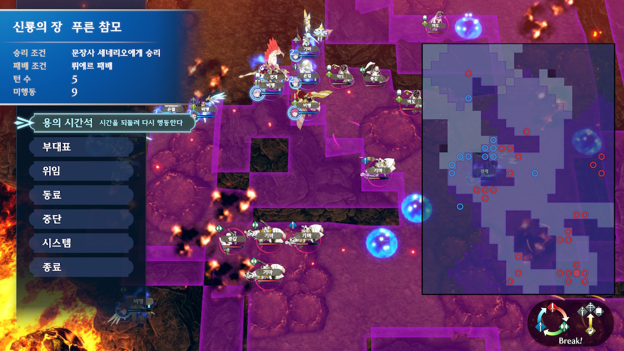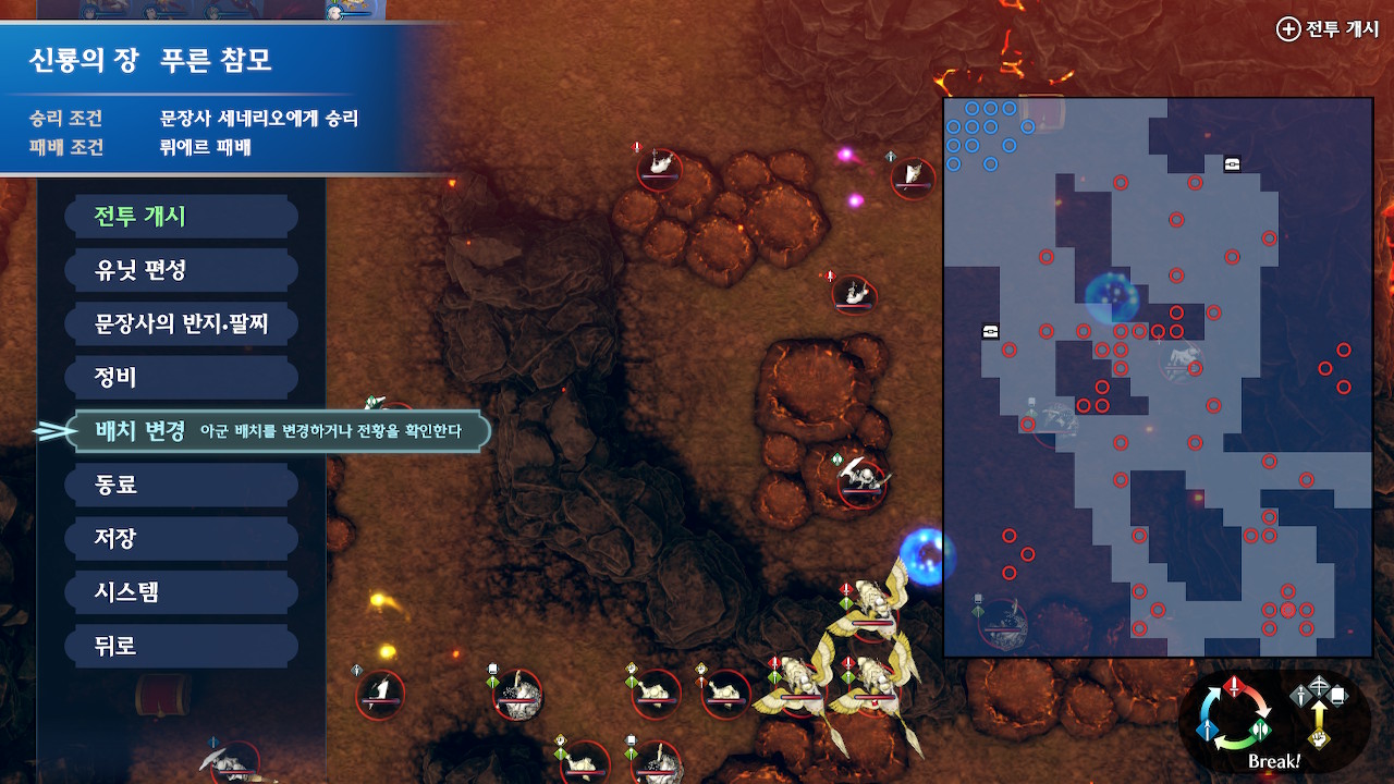좌측 루트를 뚫다 보면 7시 방향에 있는 드래곤 나이트가 날아올텐데, 상당히 애매한 위치, 애매한 간격을 두고 날아오기 때문에 탱커와 궁병을 세트로 대기 시켜 놓거나 미리 유성군(혹은 비병에게 루키나 삼반장 등의 문장사를 쥐어준다거나)으로 저격하는게 편합니다.