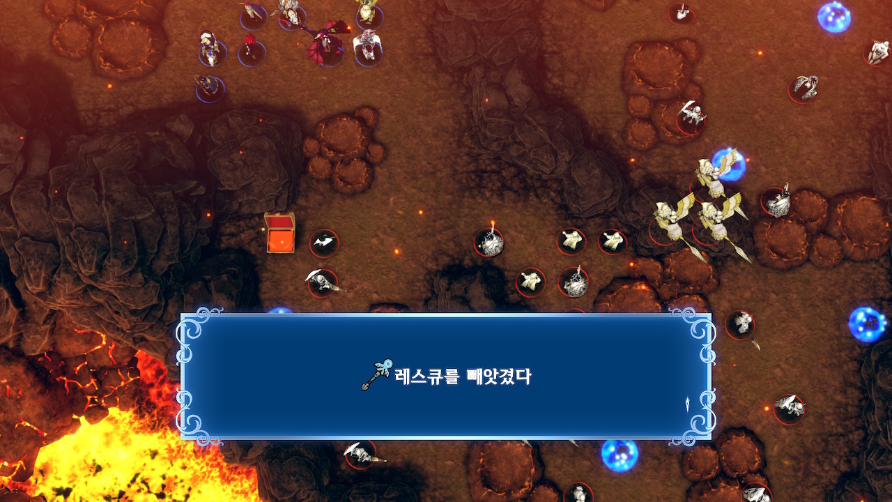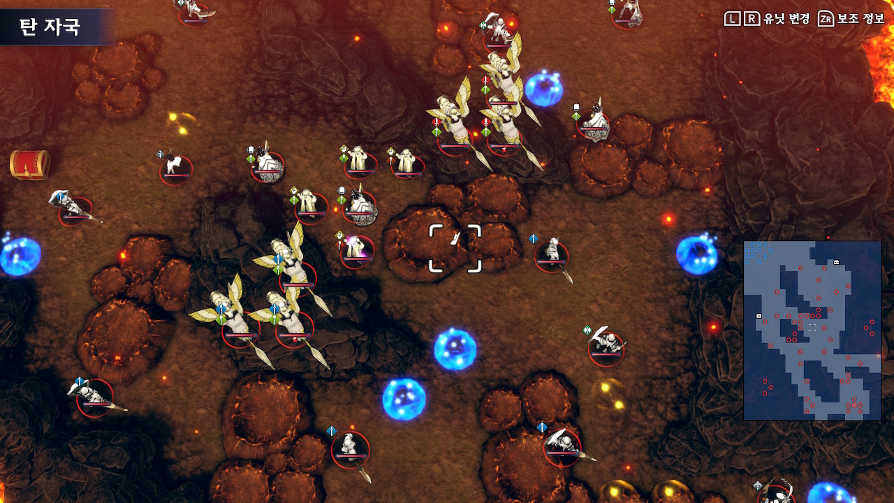 적군 지팡이 유닛의 경우 자기 주변에 피가 까인 유닛이 있으면 공격보다 힐을 우선시하기 때문에, 이를 잘 이용해서 병력을 정리하세요.