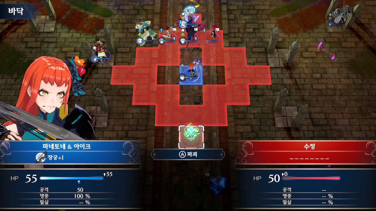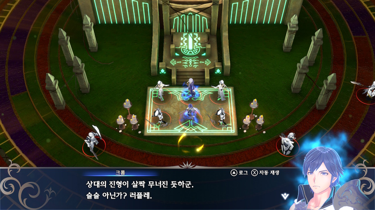 저는 2회차때의 기억으로 아군이 흩어지면 트리거가 발동됐던 것 같아서, 본대는 소극적으로 뭉쳐놓고, 좌우에 한기씩 유닛을 보냈습니다. 수정 파괴용 별동대를 보낼 경우에는 에이스 유닛을 보내는걸 추천합니다. 더 좋은 방법이 있을 수도 있지만, 계략 트리거 때문에 딱히 떠오르는게 없네요.