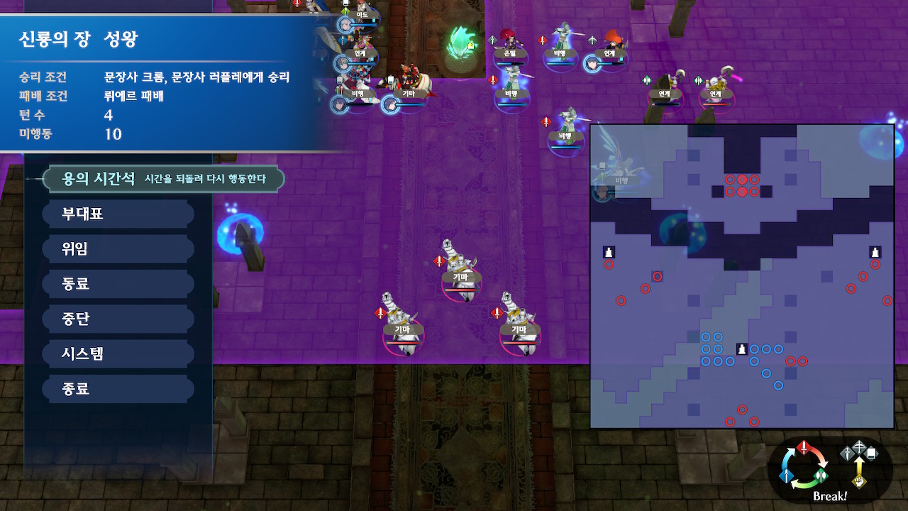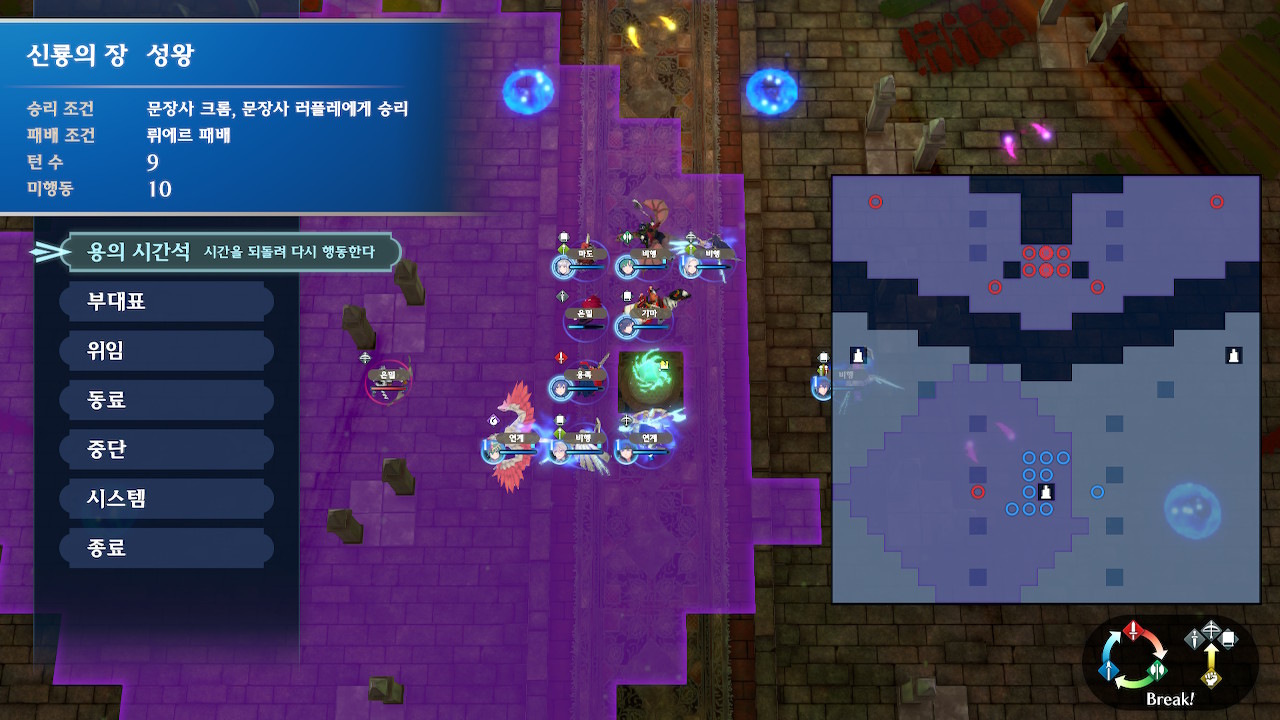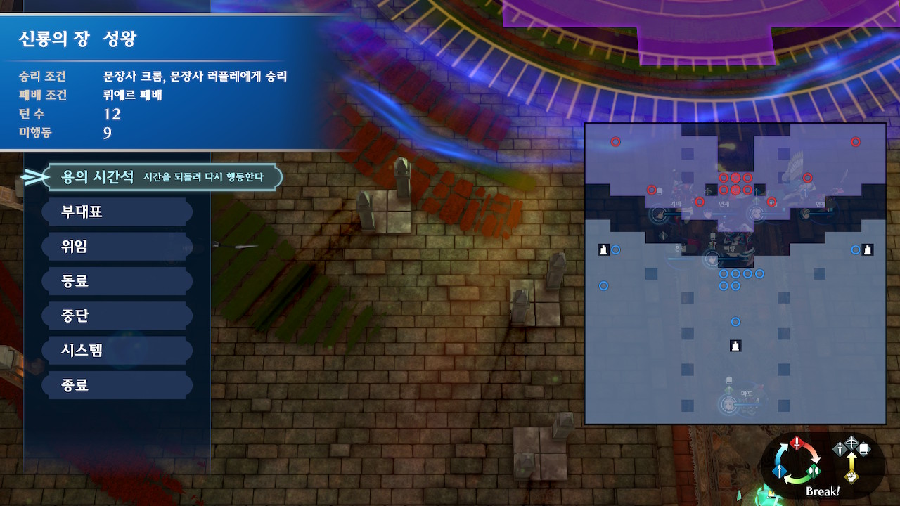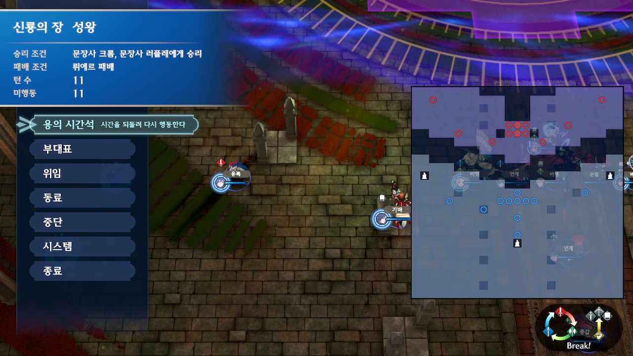 제 경우에는 별동대로 보냈던 카게츠가 마법에 급사를 하고, 뤼에르는 빨피가 되서 시간석을 사용했습니다.