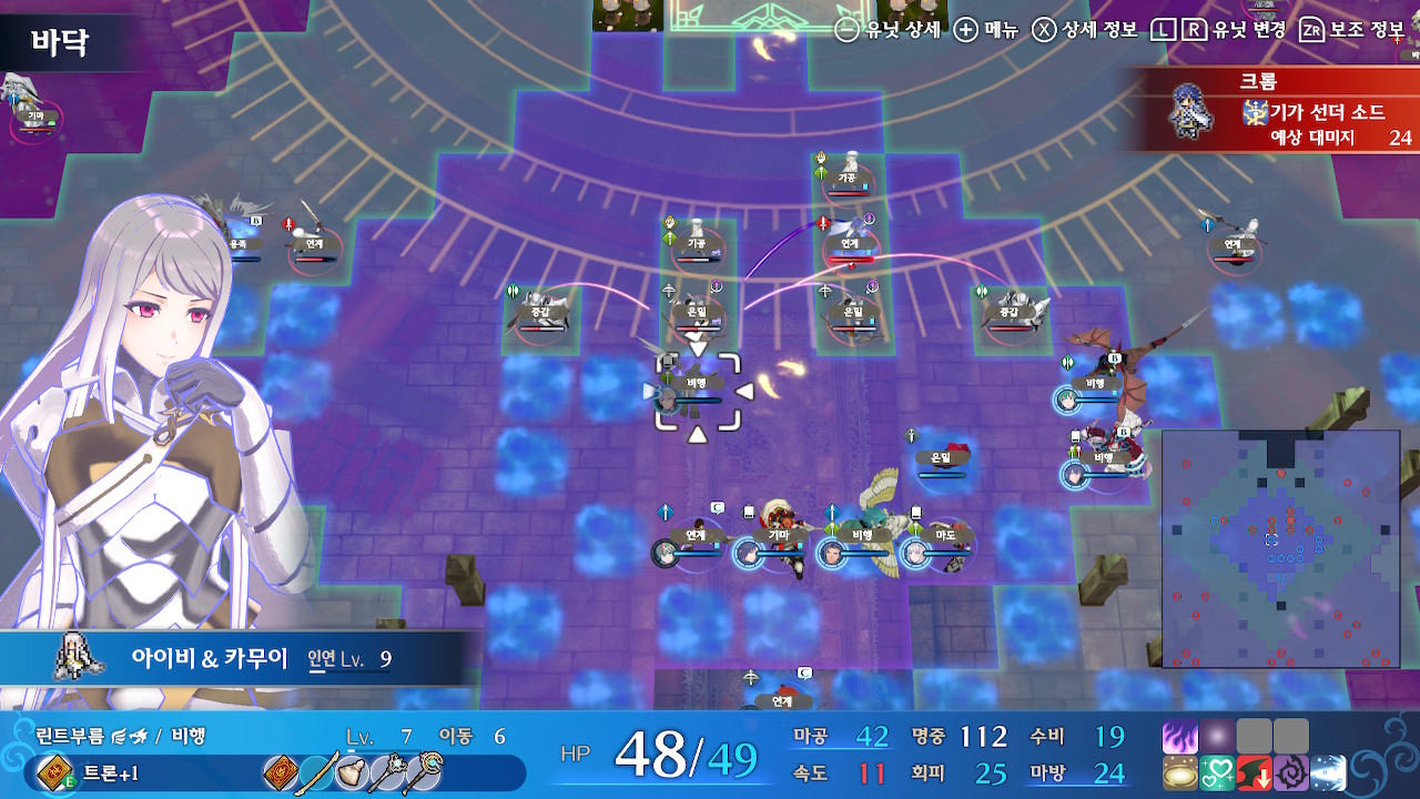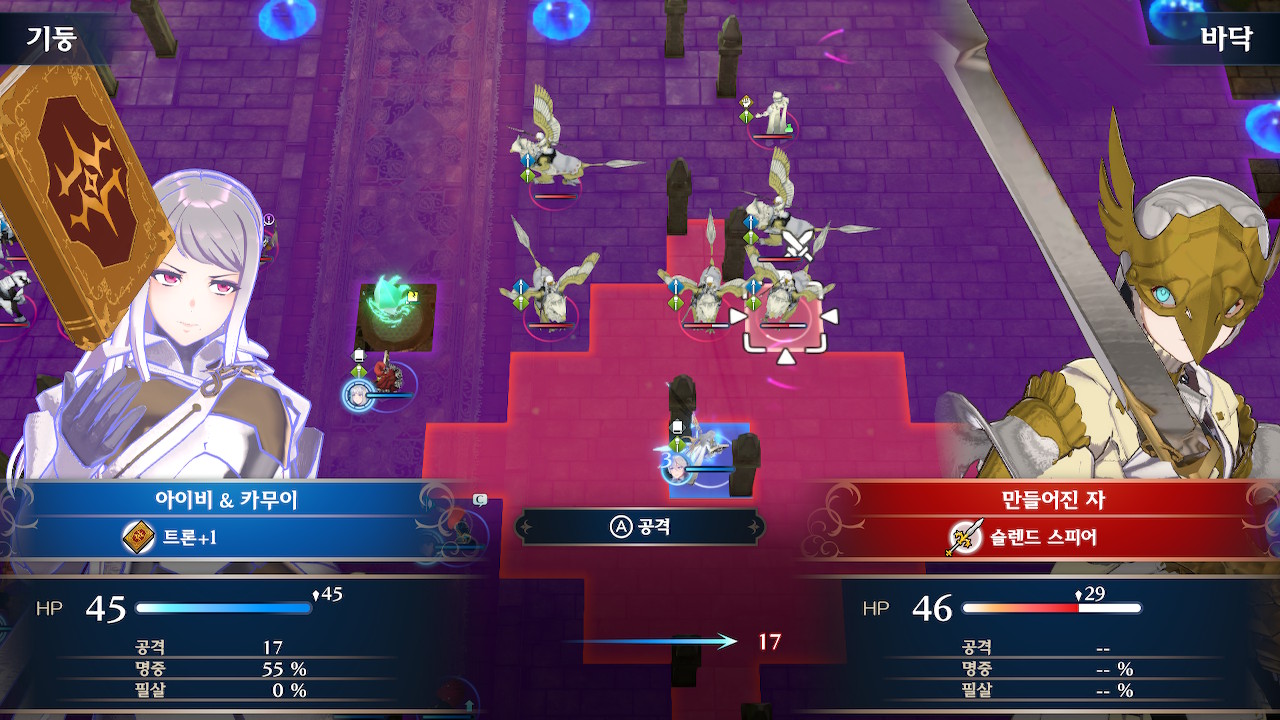 제 경우에는 중앙에서 한꺼번에 처리했는데, 아무래도 그리폰 나이트가 많기도 하고, 은근히 적군 간격이 애매해서 그다지 좋은 판단은 아니었던 것 같습니다.
