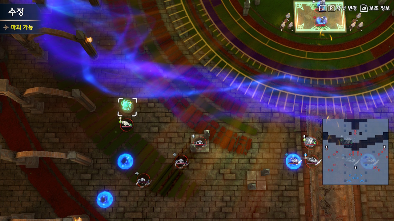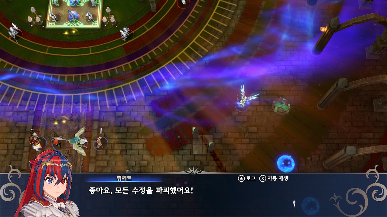 동시 파괴를 위해서는 각각의 수정마다 최소 1기-총 3기의 유닛을 보내야 합니다(이 경우 에이스 유닛을 보내는게 좋으며, 미리 1회용 도핑템 중 hp, 수비 물약을 먹이거나, 인벤에 성수를 한병씩 넣어놓는게 도움이 될 수도 있습니다). 그런데, 아군 유닛들의 간격이 좀 벌어지게 되면 러플레가 계략을 발동시킵니다.