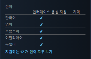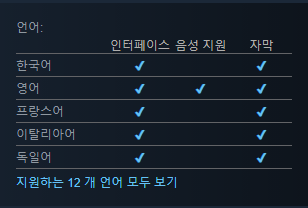 본편 출시전에 풀리는 데모인데, 데모에서도 한국어를 지원하는지는 모르겠네요. 일단 상점 페이지에는 한국어에 체크가 되어있긴 합니다.