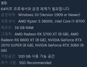 상점 페이지상 권장사양은 3060이긴한데, 말 나오는걸로 봐서 3070으로도 감당이 안되는 차세대 게임이 나온 것 같네요. ...어쩌면 4090으로도 감당을 못한다거나(?)