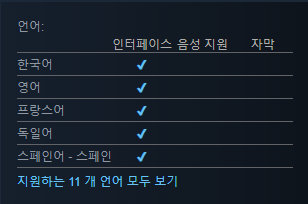 공식 한국어에 체크가 되있지만, 상점 페이지 상태로 봐서 번역기일 가능성이 있습니다