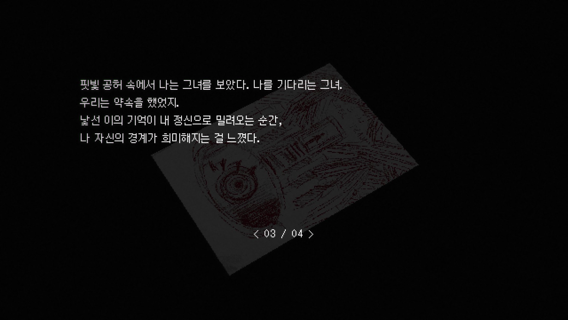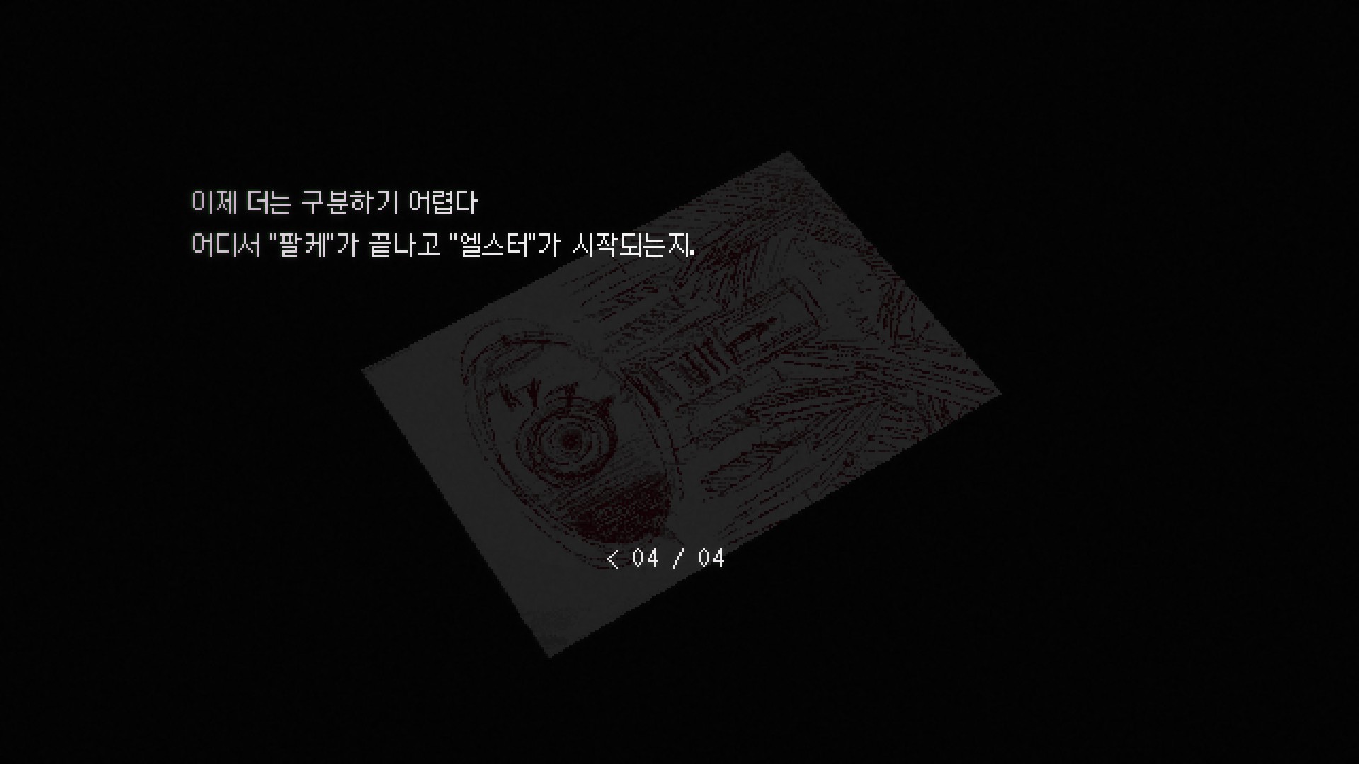 고백하자면 튜토리얼 시점부터 환상과 현실이 헷갈렸지만(아이템을 조사했을 뿐인데 생뚱맞은 공간으로 이동하는 걸 보고 이게 꿈인건지, 있어보이는 연출인건지, 엘스터가 정신병자인건지 헷갈렸다), 게임 중반부 채굴지~그 어디도 아닌 곳 이후로는 이전보다 더더욱 초현실적인 환경을 마주하게 되었고, 안그래도 어지러웠던 플롯들 또한 한층 더 혼란스럽게 느껴졌다.