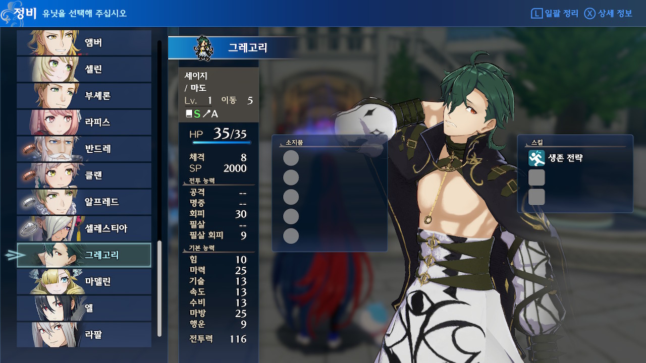 그레고리는 랜덤띵 시트리니카와 비교했을때 능력치가 괜찮은 편입니다.(시트리니카에게 천사의 옷 1개를 먹인 상태)