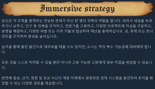 Realistic medieval noble simulator and, at the same time, a strategy game with historical depth. Manage your city and villages and make decisions in non-linear events. Command defenses in epic sieges and organize dangerous raids.