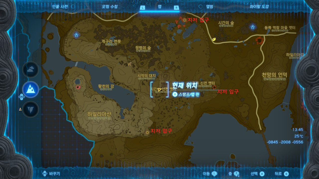 중앙 대폐광은 지상 기준 시간의 신전 옛터 바로 아랫쪽에 있기 때문에, 3시나 6시쪽에서 낙하한 후 이동을 하는게 편합니다.