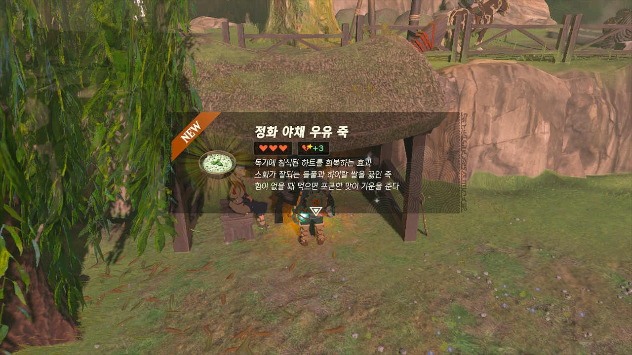 하이랄 쌀(하테노 마을 npc로부터 구매 가능, 하테노 마을 필드 채집, 기타 필드 획득 등), 신선한 우유(행상인 npc나 하테노 마을 npc로부터 구매 가능, 필드 획득 가능 등), 해품이 꽃