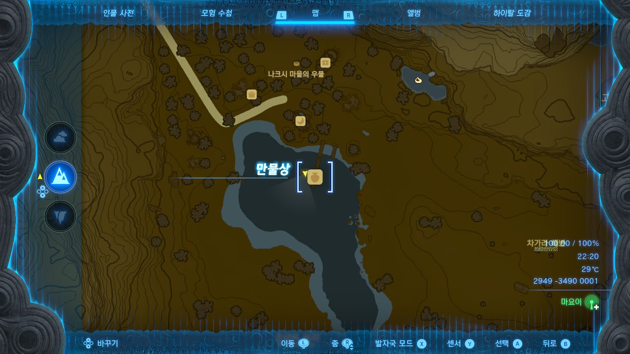 아무튼 인터랙티브 맵을 참고해서(인터랙티브 맵에 없는 지명도 있습니다), 맵에 코로그, 우물, 동굴, 기타 아이콘을 다 띄울 생각으로 노가다를 띄면 어째저째 100퍼센트가 됩니다.