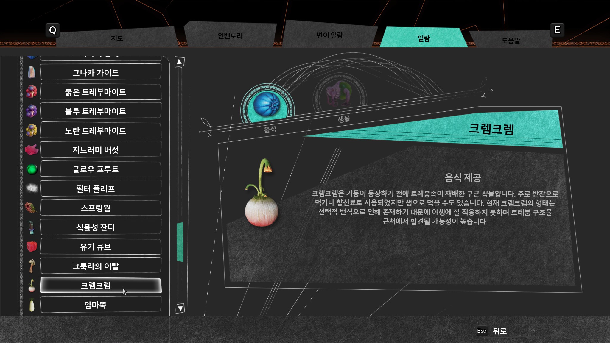 일반적으로 Trebhum은 나약한 존재이지만, 자신만의 독특한 능력으로 변이를 할 수 있고 세상에 가득한 천연의 먹이를 섭취하며 새로운 스킬을 잠금 해제할 수도 있습니다. 플레이어는 탐험 도중 다양한 종류의 과일, 식물군, 외계 생명체로 실험을 하여 새로운 능력과 게임플레이 옵션을 잠금 해제해야 합니다.