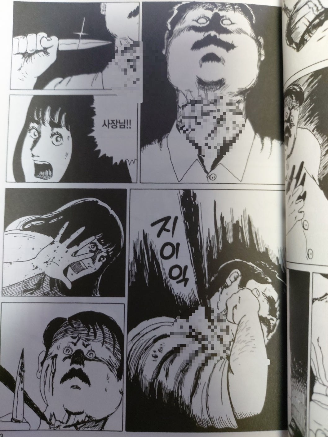 그리고 90년대 후반에 출간됐던 시공사 판본(이토 준지 공포 만화 컬렉션)의 경우, 잔인한 부분, 절단면 등이 검열되어 있는데, 걸작집 판본은 검열된 부분이....없는 것 같네요.