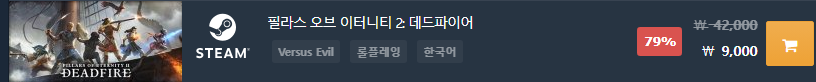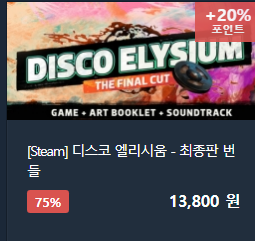 디스코 엘리시움은 돈까스와 자웅을 겨루는 가격에 할인 판매 중입니다. 이거는 ...느낌이 조만간에 계약 끝나고 다렉에서 사라질지도(...)
