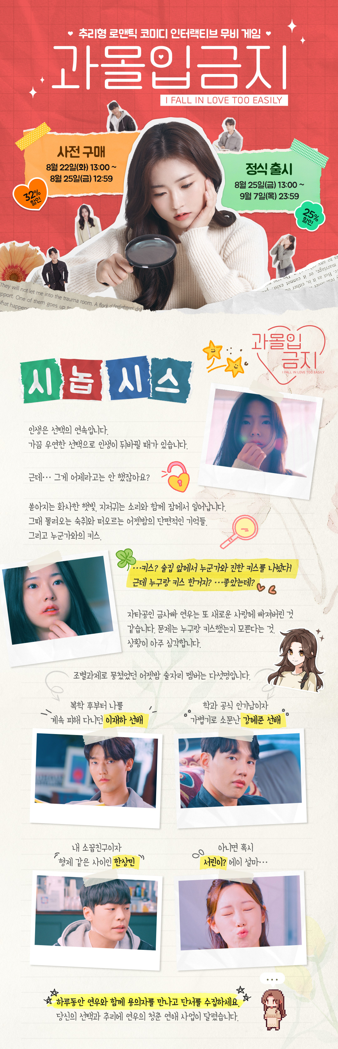 A memory of a sweet kiss from last night. A lost cell phone. Three suspects. Become the main character's helper, make story choices, collect hints, and clear mini-games. A full-scale mystery romantic comedy interactive movie.