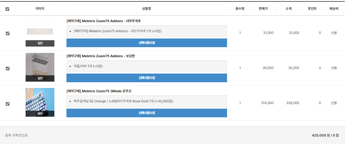 처음부터 보강판 옵션을 고를 수 있으면 좋을텐데, 그건 안되네요