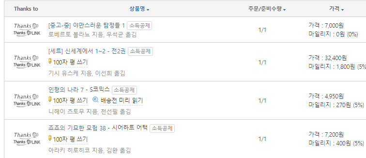 포장만 뜯은 만화책들 카테고리에 속해있는 상태(?). 출판사의 악성재고인지, 정가인하까지 들어가서 단돈 12960원에 구매 가능.