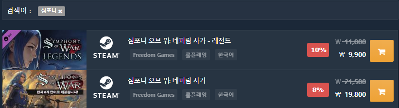 심포니 오브 워는...일단은 노세일이네요. 나중에 할인 들어갈 수도 있는데, 9월 20일 기준으로는 노세일 상태입니다.
