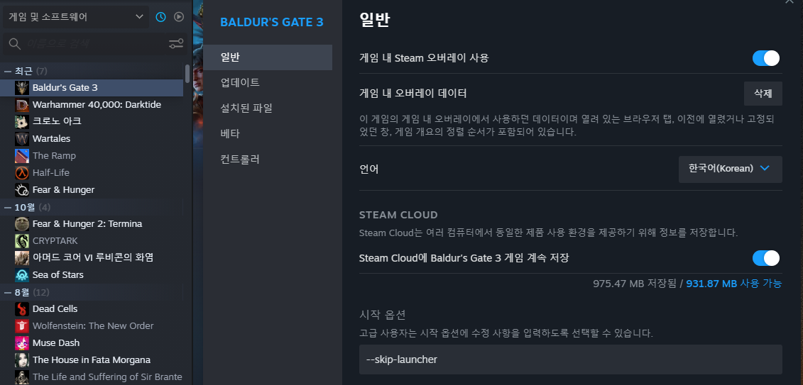 ...만 인게임 옵션에서는 한국어 변경이 안보였습니다(...).