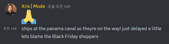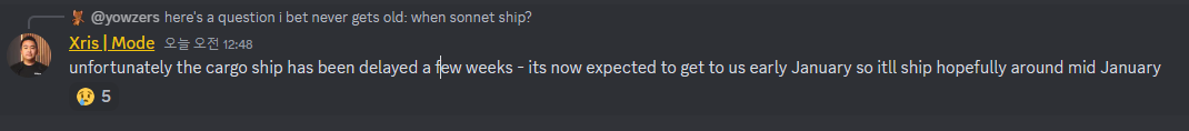 기존의 모드 소넷 배송 예정일은 12월 중순~말이었습니다.