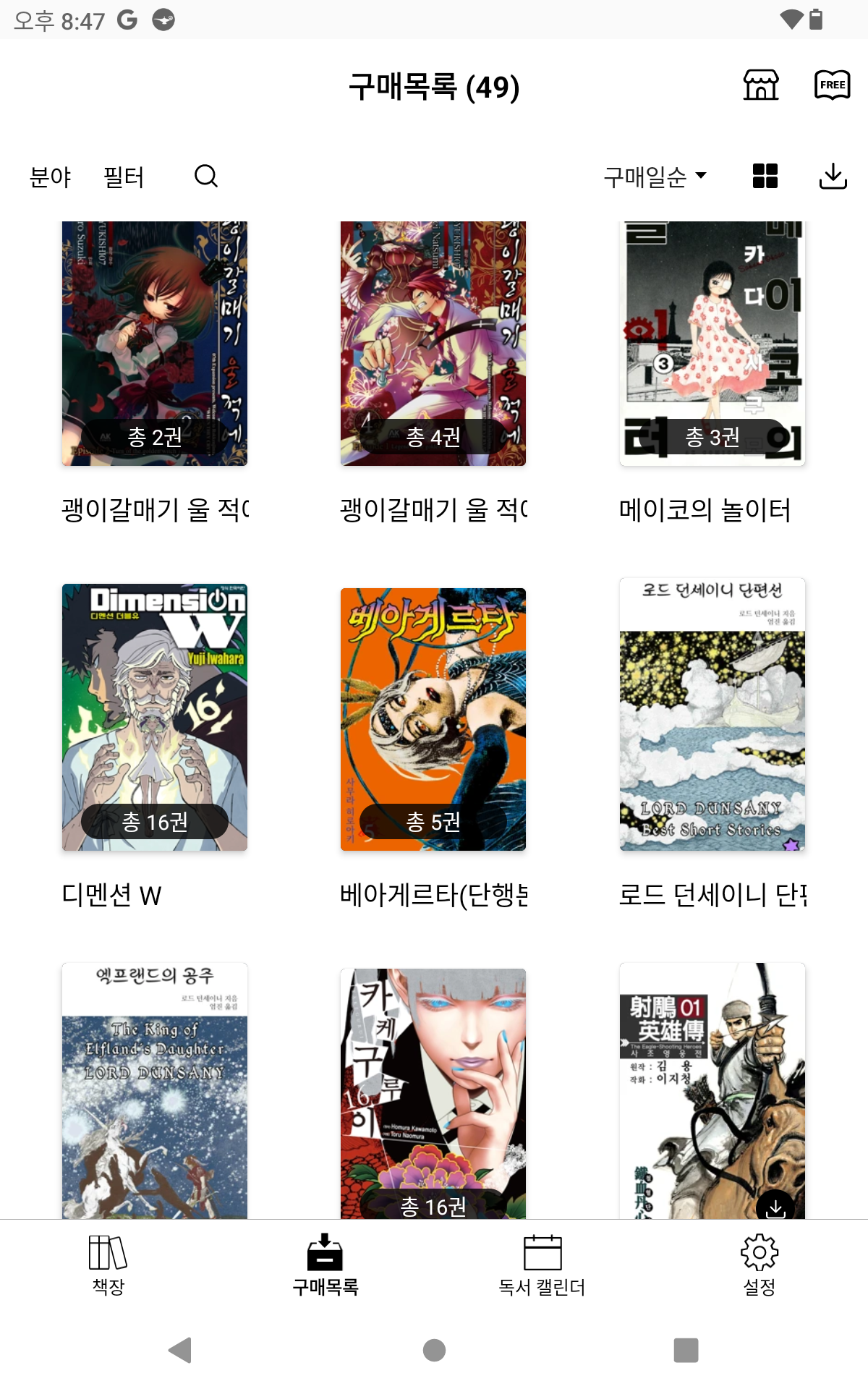 구매목적 : 종이책으로 사기 애매하거나 종이책으로 발간되지 않는 작품 보는 용도로 구매