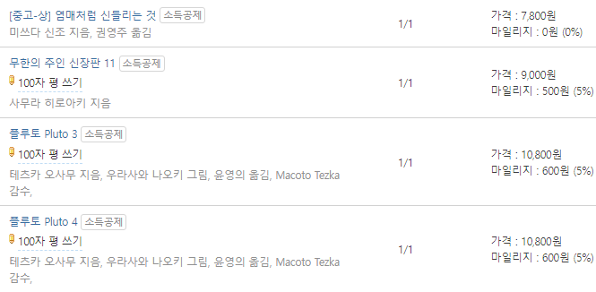 다시 모으려고 보니 종이질도 그대로고, 표지도 그대론데 가격만 2.5배 정도 올라서 화가 날 정도다.