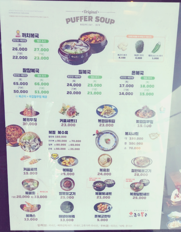 내가 먹은건 밀복국이었는데, 개인적인 감상은... 줄서서 먹을정도는 아닌 것 같다는 것이다. 다른 복요리 전문점들과 비교했을 때 특출나게 맛있진 않았기 때문이다.