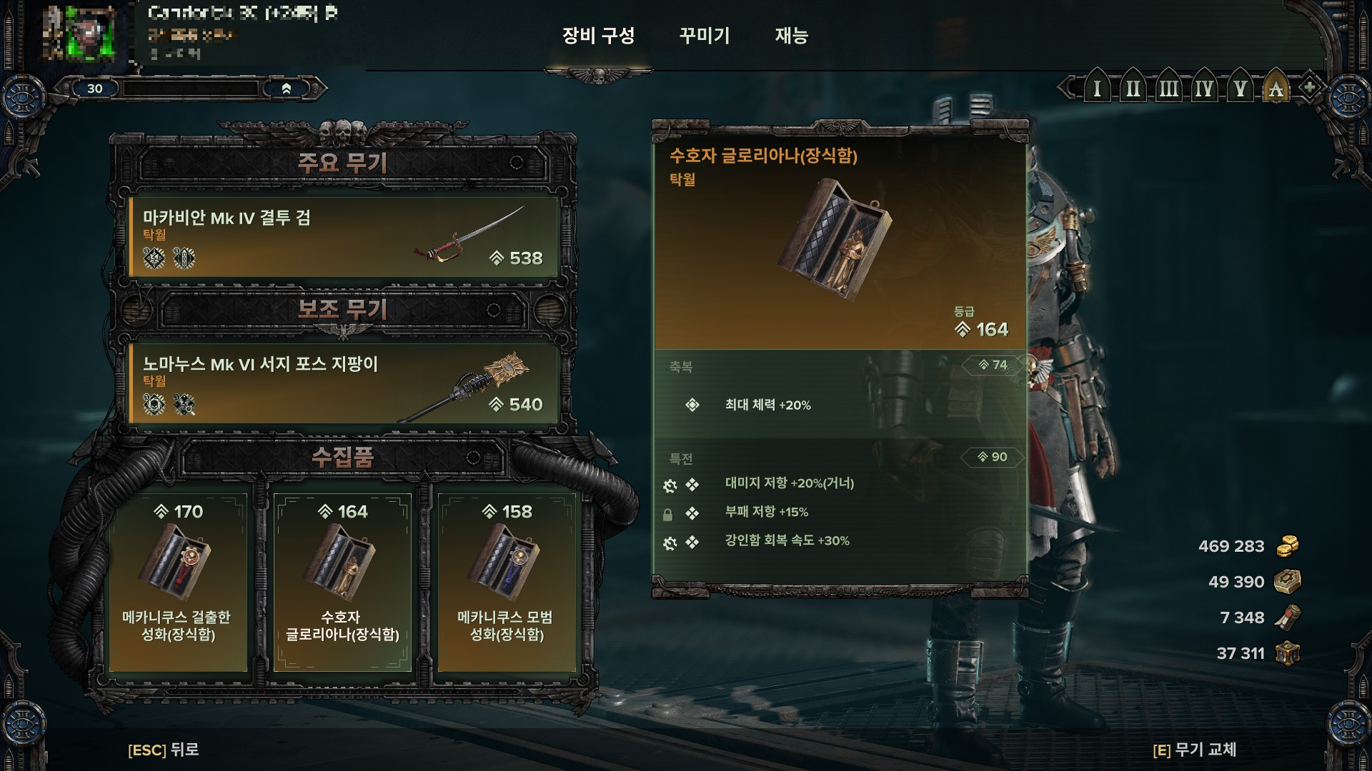 특전은 강인함 회복속도, 대미지 저항(거너)을 챙기시면 됩니다.