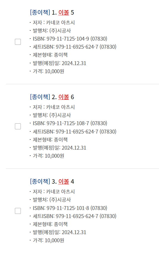 분명히 1~2개월 전에 확인했을 때는 240531 발행(예정)일이라서, 5월에는 살 만화가 많다고 생각했습니다...만