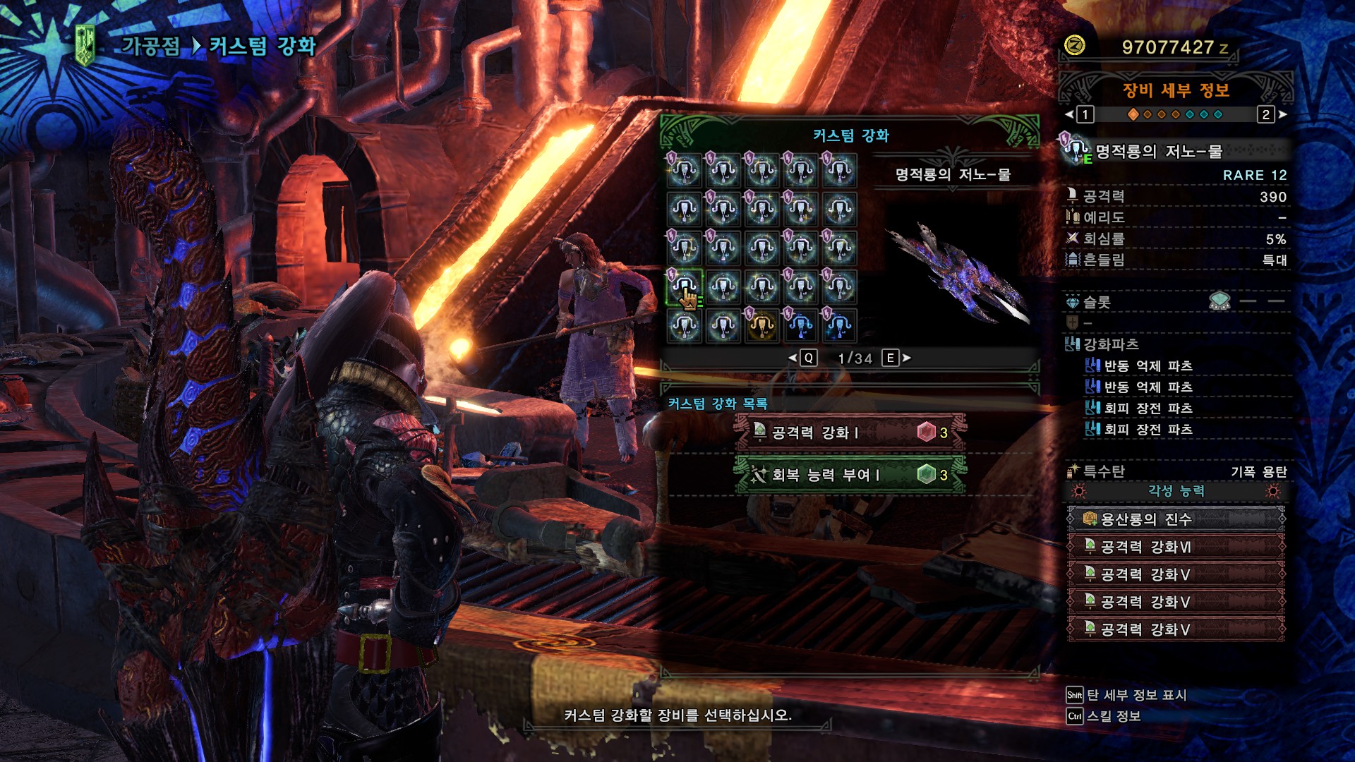 오르그문그 3셋 KO극의 커스텀 물라보(철갑유탄) 커스텀입니다. 기존의 커스텀과 차이점은 다음과 같습니다. 진명검>명검으로 다운 그레이드, KO술 극의 추가, 방어력 소폭 증가, 속성내성 소폭 증가, 기초 공격력 소폭 감소 끝. 멀티 플레이용 무기 각성 : 예5공6555, 흰예리 90타가 모자란다 싶으면 예6공5555로 쓰세요. 커스텀 강화 : 공격 회복 약점 기준 회심(상처) : 5 40 5 30(50)=80(100), 도전자 발동시 추가회심 발생 게임/몬스터 헌터 월드 : 아이스본 2020.08.09
