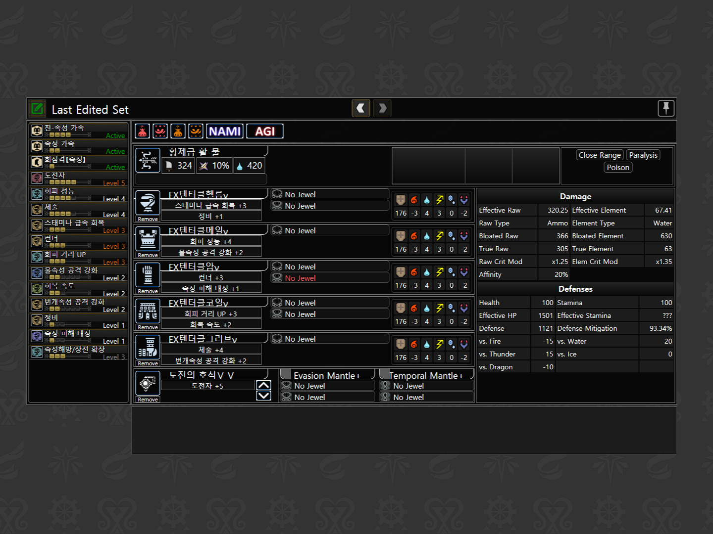 앙심을 넣은 커스텀과, 완충을 넣은 커스텀 두가지가 있습니다. 활을 생각하면 앙심 커스텀을 쓰더라도 무기 커강에 회복을 넣어도 괜찮을 것 같긴 한데, 회복 커강+앙심 테스트를 안해봐서 생략합니다. 앙심이 들어간 커스텀입니다. 체력이나 회성을 줄이고 공격이나 도전자(방어구를 교체해야 됨)를 더 올릴 수도 있습니다. 파츠 : 반동 반동 근거리 근거리 약점 기준 회심(상처) : 20 10 5 20 30=85%(105%), 도전자 발동시 추가 회심 발생 완충이 들어간 커스텀입니다. 파츠 : 반반근근 약점기준 회심(상처) : 10 40 5 30=85%(105%), 도전자 발동시 추가회심 발생 인땅 역모멸 테스트 추가 위 커스텀들로 이벤트 모멸넬기를 각각 한번씩 잡아봤는데 무난하게 5분대가 나옵니다. 압도적인 화력..
